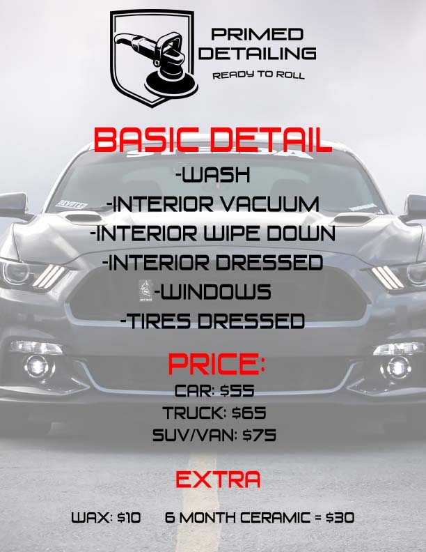 Would highly recommend Primed Detailing! Vehicles are always super clean and shiny!Service: Auto detailing