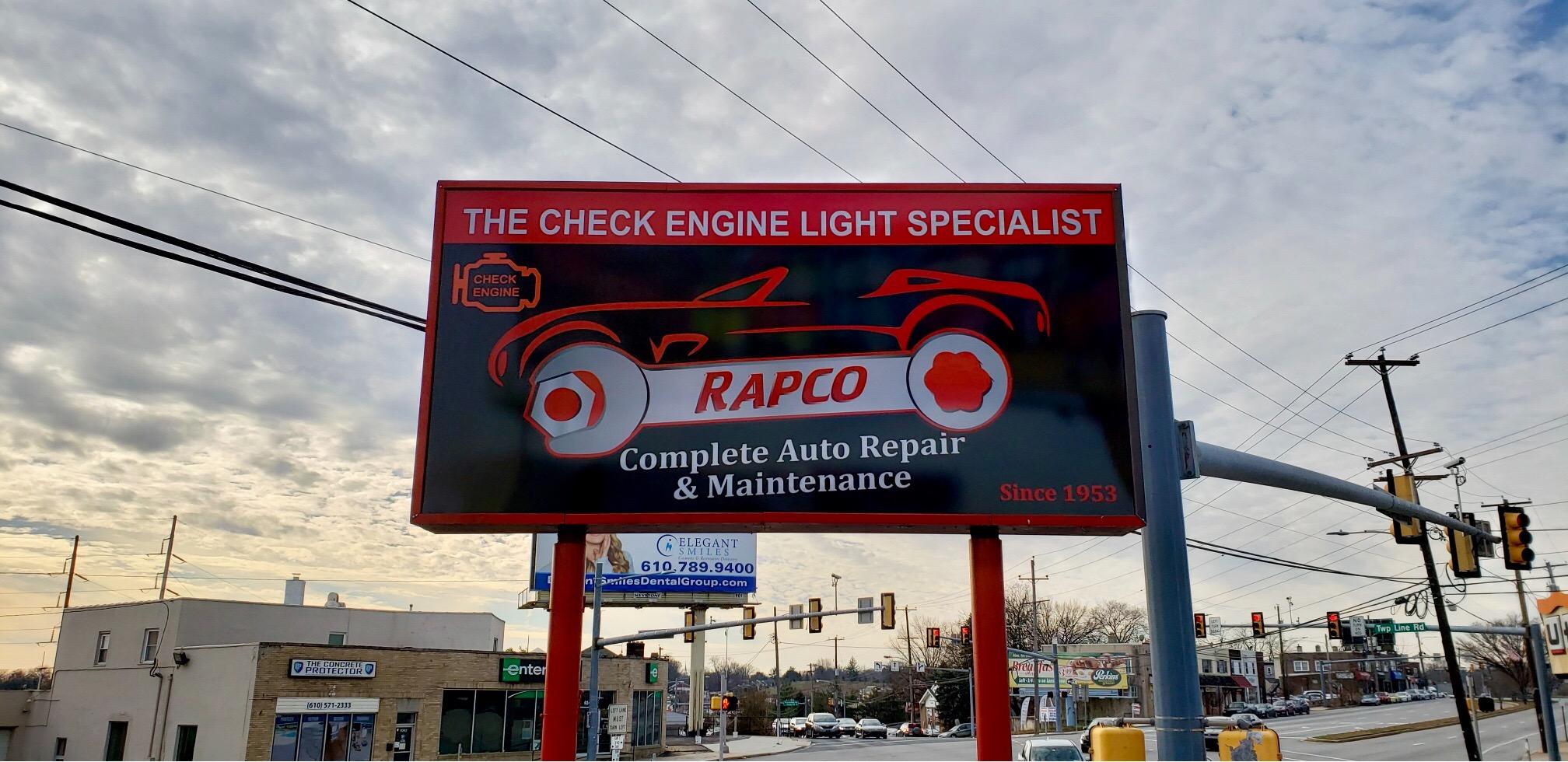 Rapco Automotive Centers has been providing complete auto repair services in Upper Darby, Havertown, and Drexel Hill since 1976. They specialize in handling Check Engine Lights and offer a range of services including brake and muffler repairs, oil changes, tune-ups, wheel alignments, and diagnostic services. Customers appreciate the friendly and knowledgeable staff, particularly Steve and Miguel, who are praised for their excellent customer service and willingness to explain services in detail. Many loyal customers have been visiting Rapco for years, often referring family and friends, highlighting their trust in the quality of work provided. The business offers a free local shuttle service and backs all repairs with a 2-year or 24,000-mile warranty. Positive reviews mention quick turnaround times and proactive assistance, such as fixing tires and resetting sensors, which adds to the customer satisfaction. Clients feel valued and treated like family, often sharing their experiences through social media. Overall, Rapco Automotive Centers is highly recommended for reliable auto repair and maintenance, consistently delivering exceptional service and fostering a welcoming environment for all customers.