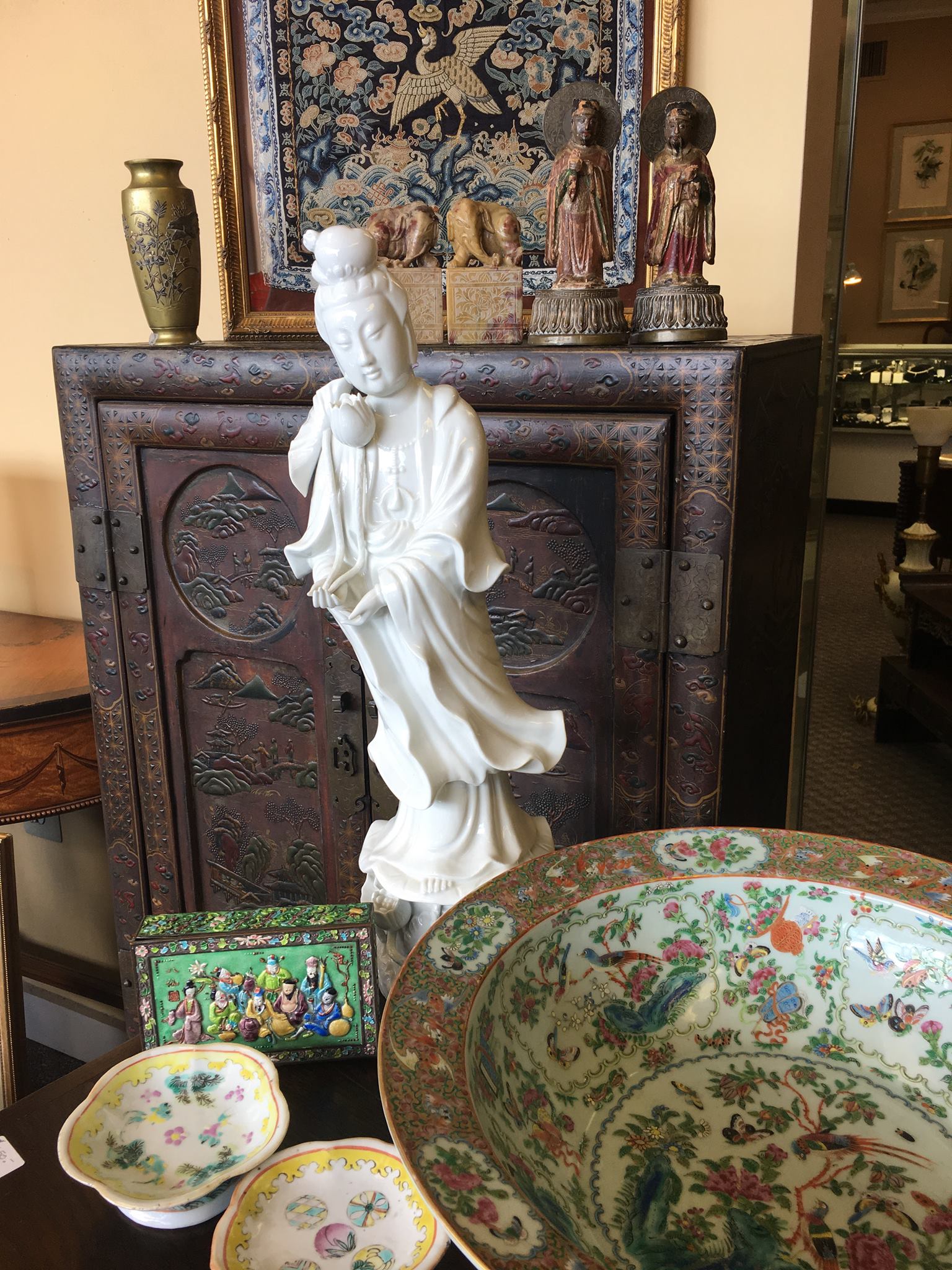 I’ve been to this shop a few times & have always felt comfortable spending a good amount of time browsing. The owner is always happy to answer my questions and provide the history of each piece. I’ve purchased various items from furniture to jewelry & couldn’t be happier.