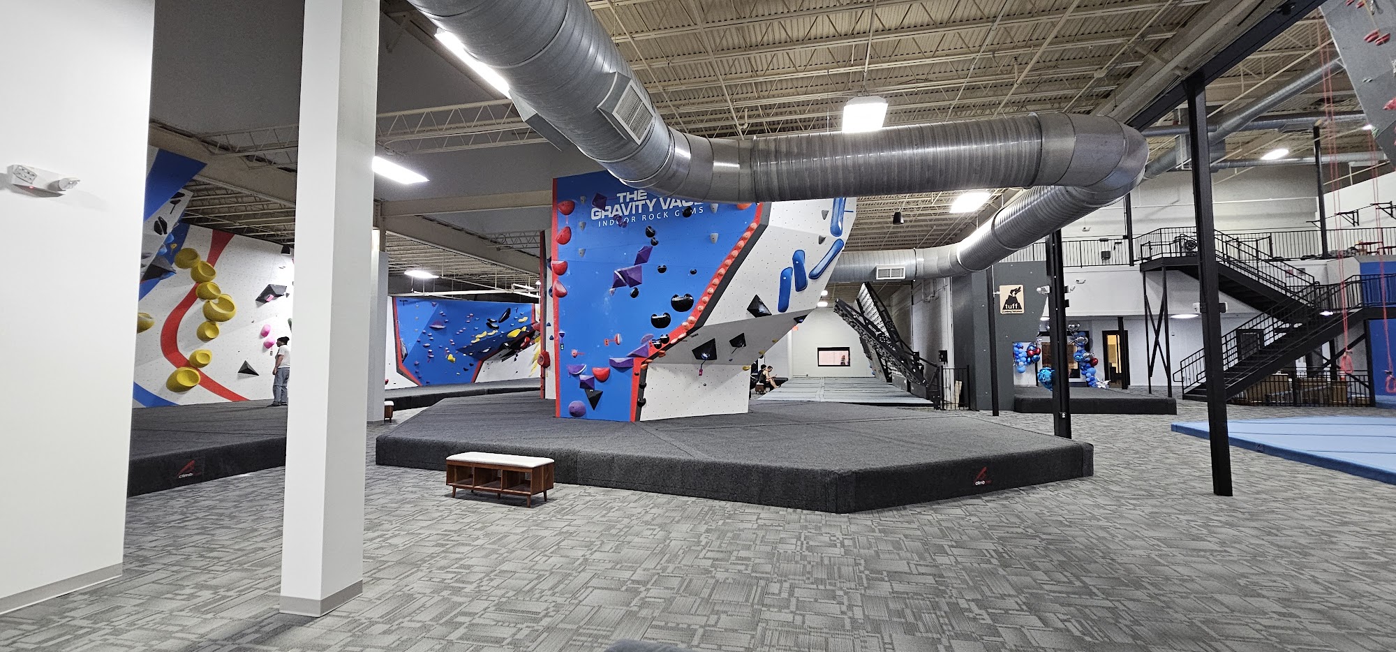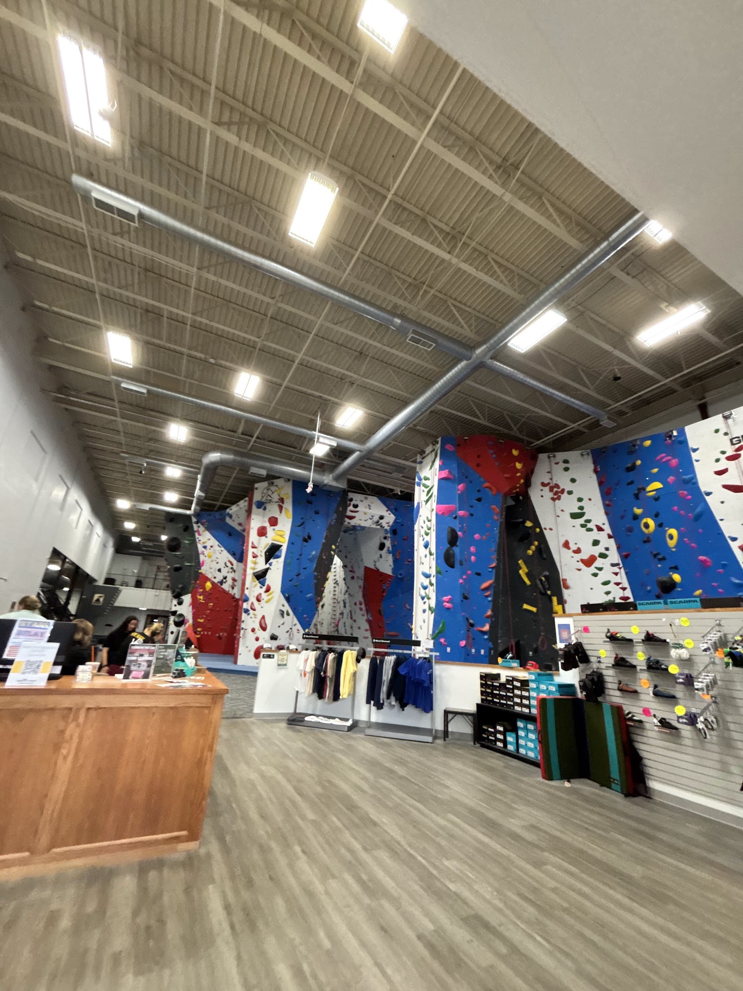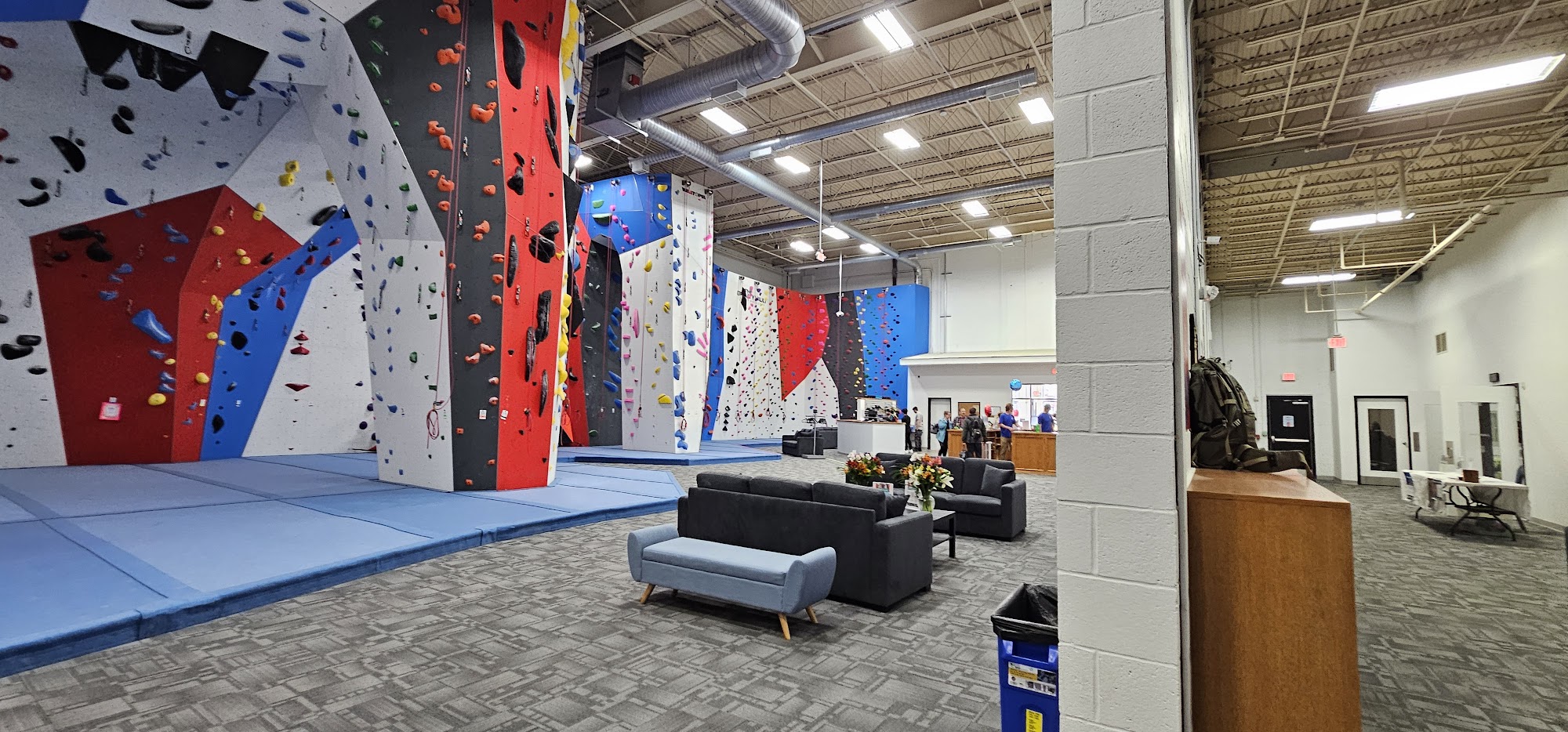 Indoor Rock Climbing Gym - 15,000 total square feet of climbing - 67 rope stations and 30’ high walls - 50 leadable stations and longest continuous lead climb of 70’ - 5,000 square feet of bouldering - 24’ wide slab spray wall, 16’ wide Kilter board and 10’ wide Tension board – all adjustable - Programs for kids and adults - Full service retail shop - Lounge and work space with WiFi