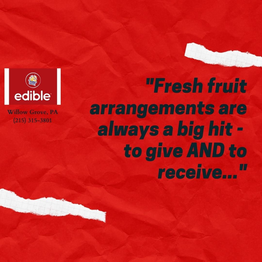 My husband received a wonderful Get Well arrangement from the Edible Arrangements in Willow Grove. His rehab doesn’t allow him chocolates so I enjoyed every chocolate covered strawberry! We loved all the fresh fruit, it was great quality. What a thoughtful and enjoyable gift to receive. I’ll be sending these in the... read full comment