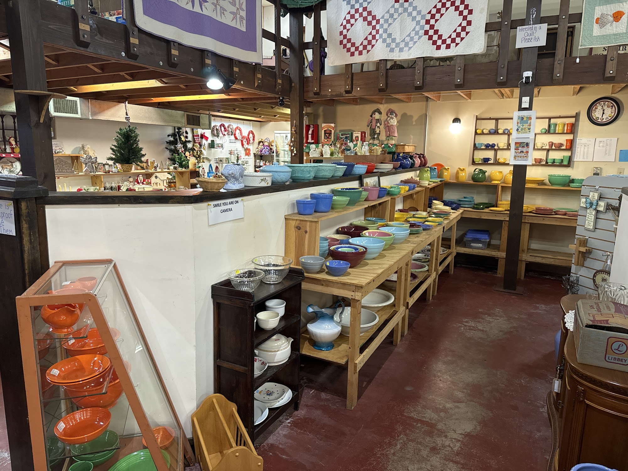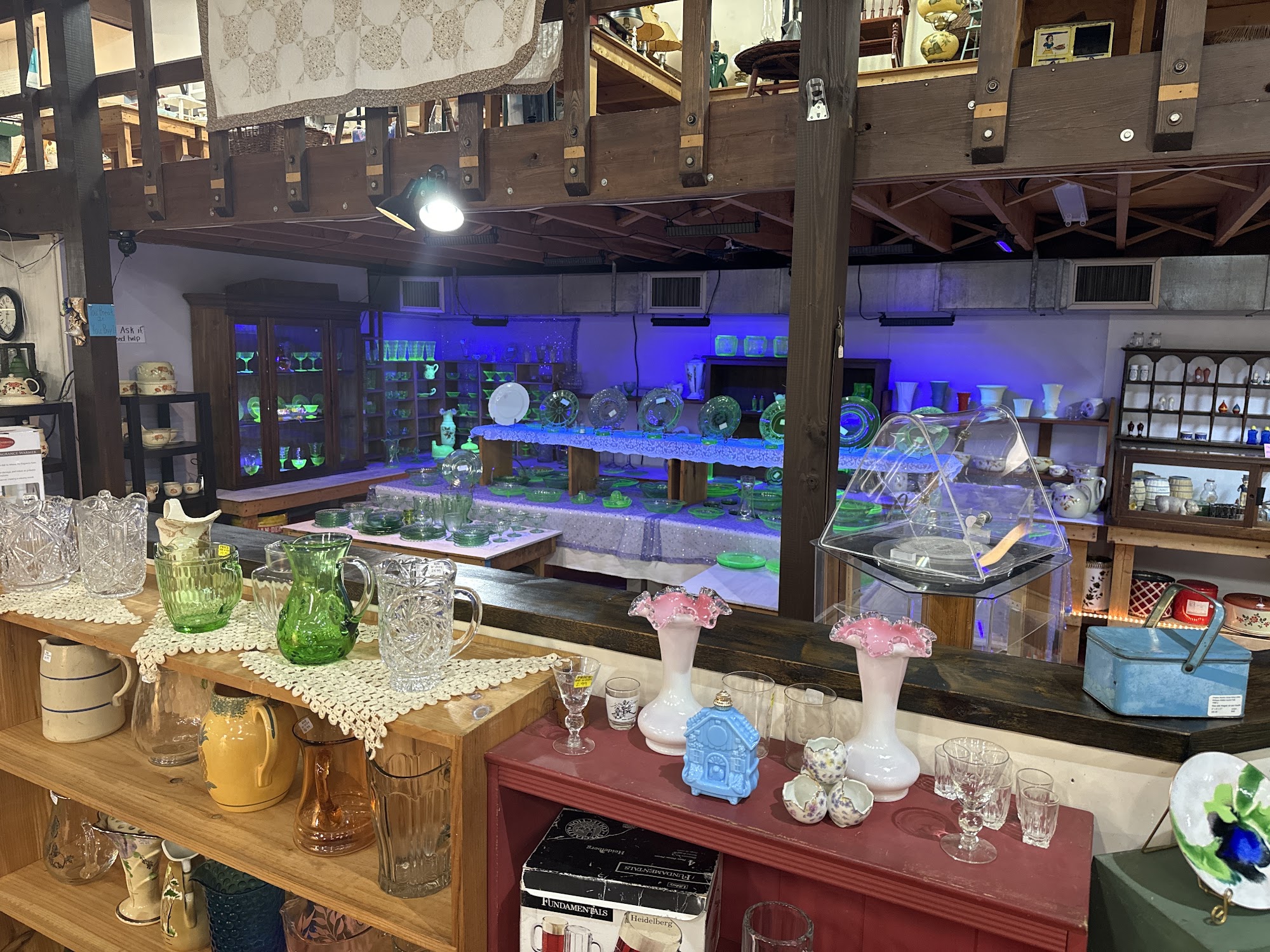 Nice shop, friendly staff, well lite, organized, lots of glassware and small nic nacs, plenty of parking, if your in the area, stop by, buy something to support our local businesses!!