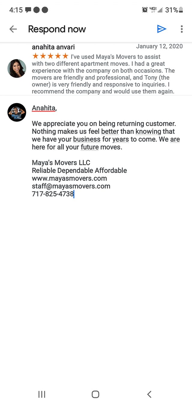 MAYA’S MOVERS LLC IS A FAMILY OWNED/OPERATED MOVING COMPANY WHO IS FULLY LICENSED & INSURED, WITH OVER TEN YEARS EXPERIENCE. WE ARE THE PROUD WINNERS OF, "BEST MOVING COMPANY" IN YORK, PA 2019, 2020 AND TOP RATED IN THE STATE FOR 2019. MAYA’S MOVERS SHOULD BE YOUR 1ST CHOICE IN MOVING. PUC: NO. A-8921045 US DOT: 3128183 MC-91672