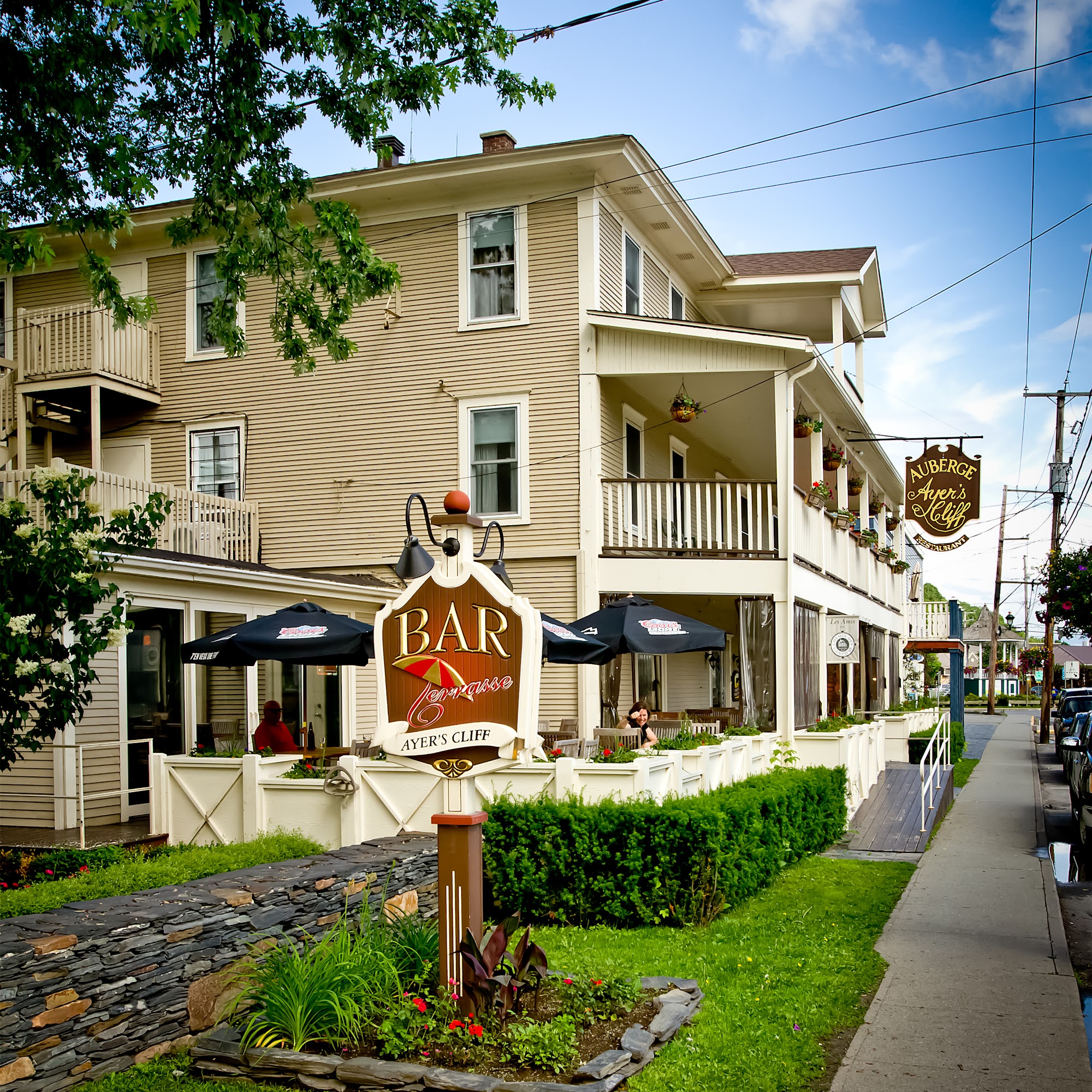 Auberge Ayer's Cliff, in the heart of the village, offers a restaurant with a dining room, bar, and terrace. It features seasonal cuisine and local products, with ten rooms available. The catering service in Estrie is for weddings, corporate events, and private parties. Reviews consistently praise the excellent and delicious food, with very good and fast service from smiling, professional, and beautiful waitresses. Guests enjoy the beautiful and vibrant atmosphere, enhanced by amazing live entertainment, making it perfect for a night out. The catering service receives high recommendation for amazing quality and quantity of food at an excellent price. While most experiences are very satisfying, some note minor service oversights. The spot earns strong recommendations for a return visit.