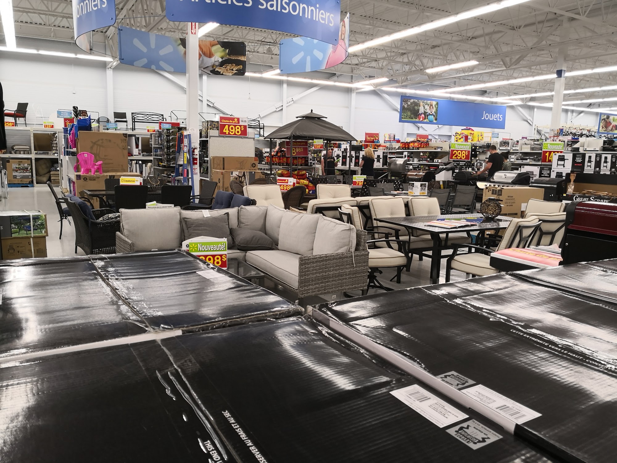Walmart Supercentre is a very convenient store for groceries, offering good deals on boxed, canned, and fresh food. Customers can find a great selection of everyday essentials at low prices. The store is generally easy to navigate with very long aisles, though main alleys are sometimes crowded with pallets and boxes. The parking lot is well maintained. While many products are available, some reviews note that items can often be missing from displays, especially on special in non-food sections. Price displays are sometimes inaccurate, complicated, or non-existent. There can be a lack of choice for some items and the store is often very busy with a lot of people, leading to waits. The quality of some fresh items, like beef, is described as so-so. The employees are frequently noted as dedicated, patient, and providing excellent customer service, even in busy or challenging situations. However, there are comments about a real lack of cashiers and staff at times. Payment problems are occasionally announced. The store offers card payment and options for in-store pickup.