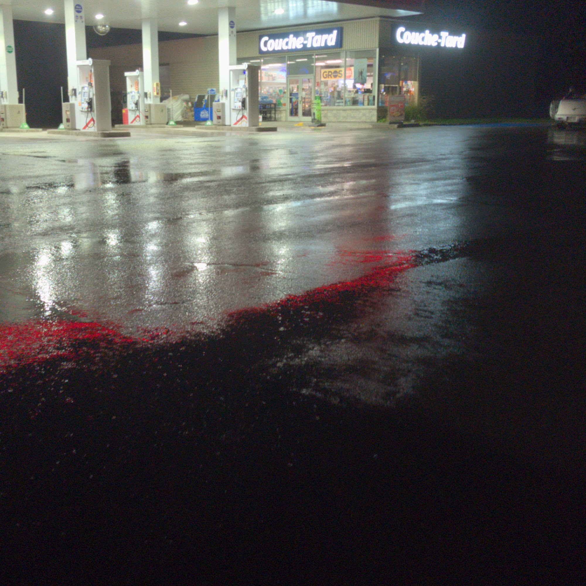 Large parking lot,large surface area for a convenience store.