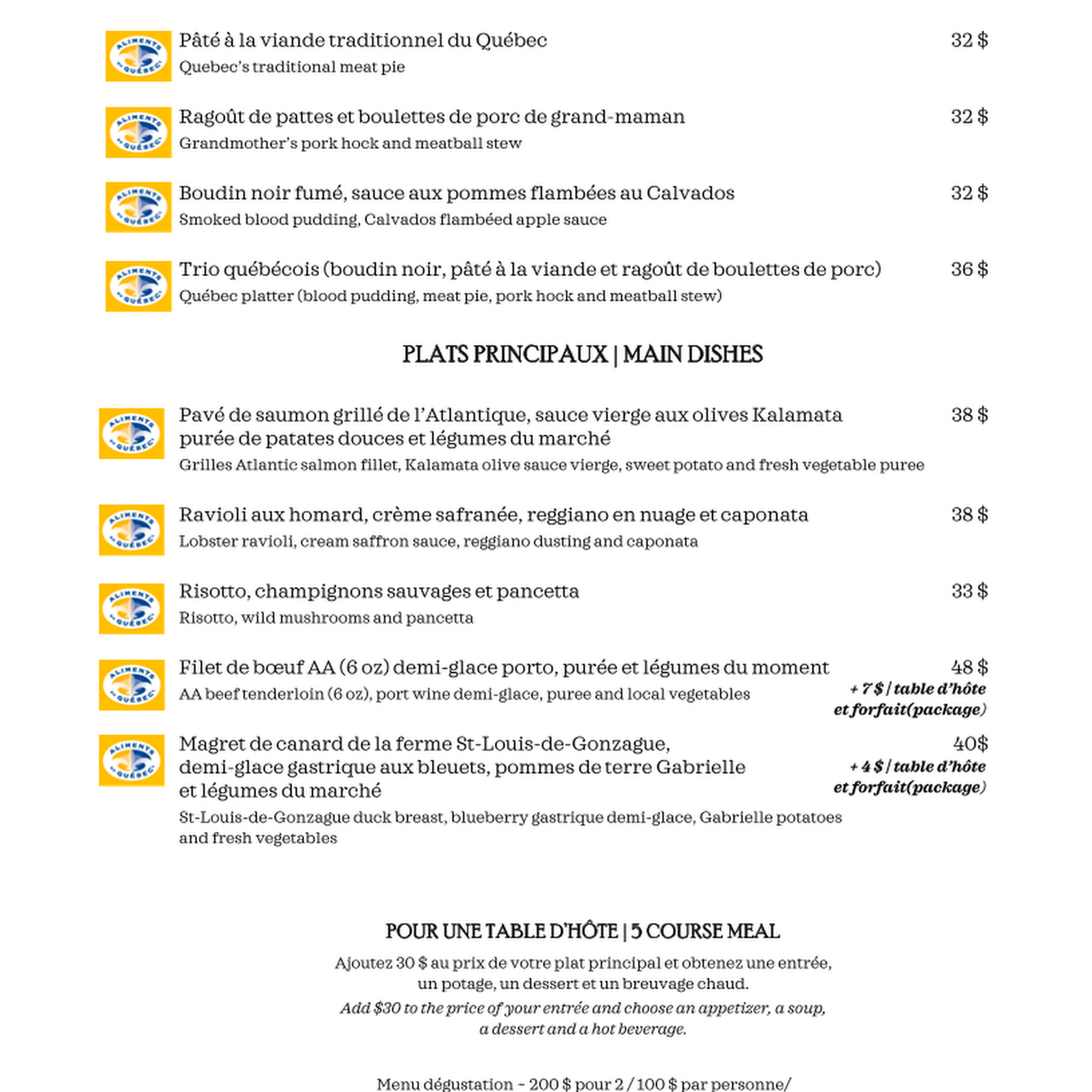 Auberge Baker Restaurant is a hidden gem located on the historic Côte-de-Beaupré, between Québec and Mont Sainte-Anne. It resides inside a beautiful, restored ancestral house over 150 years old, filled with authentic antiques, providing a warm and inviting atmosphere. The setting transports guests to another era. The restaurant offers an outstanding and magical dining experience, praised for its phenomenal and incredible food. Guests recommend the tasting menus, which feature well-plated dishes like veal carpaccio, pea soup, beef tenderloin, and strawberry shortcake. The service is impeccable, very friendly, courteous, and helpful. It accommodates both intimate meals and large groups, offering great value for a reasonable price. The auberge also provides comfortable, antique-furnished rooms with modern amenities. A breakfast featuring crepes with their own maple syrup is included. It is a great place to taste local, authentic food while visiting the historic area.