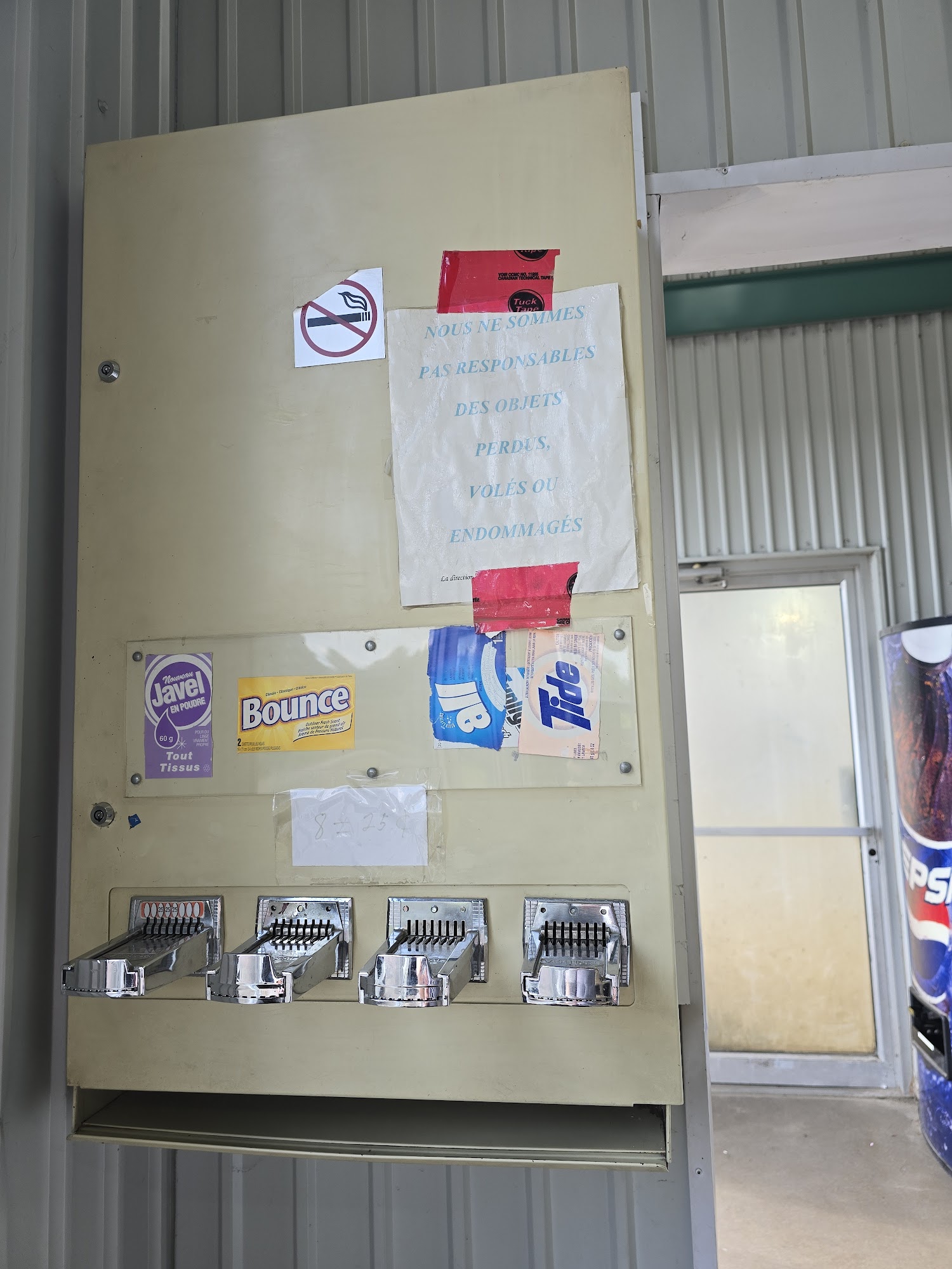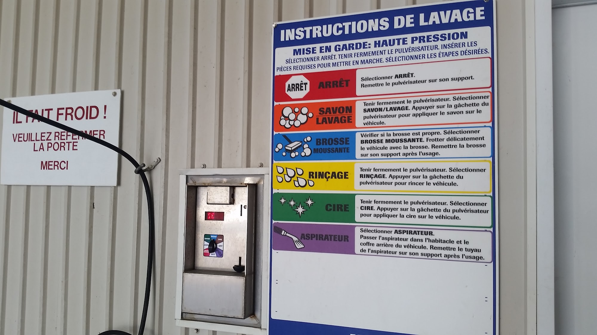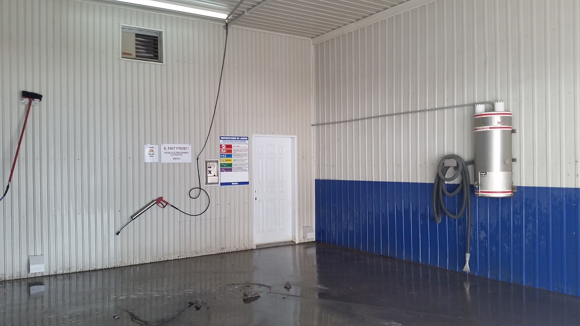 Buanderie - Lave auto is a clean place combining a laundry room and car wash. The owner is very nice and easy to reach. However, the dryers need to be cleaned as clothes may not dry, and some washers smell corrupt. The place deserves a deep cleaning of grime. While machines do not gobble up money, there is no one present if a piece is eaten by a machine.