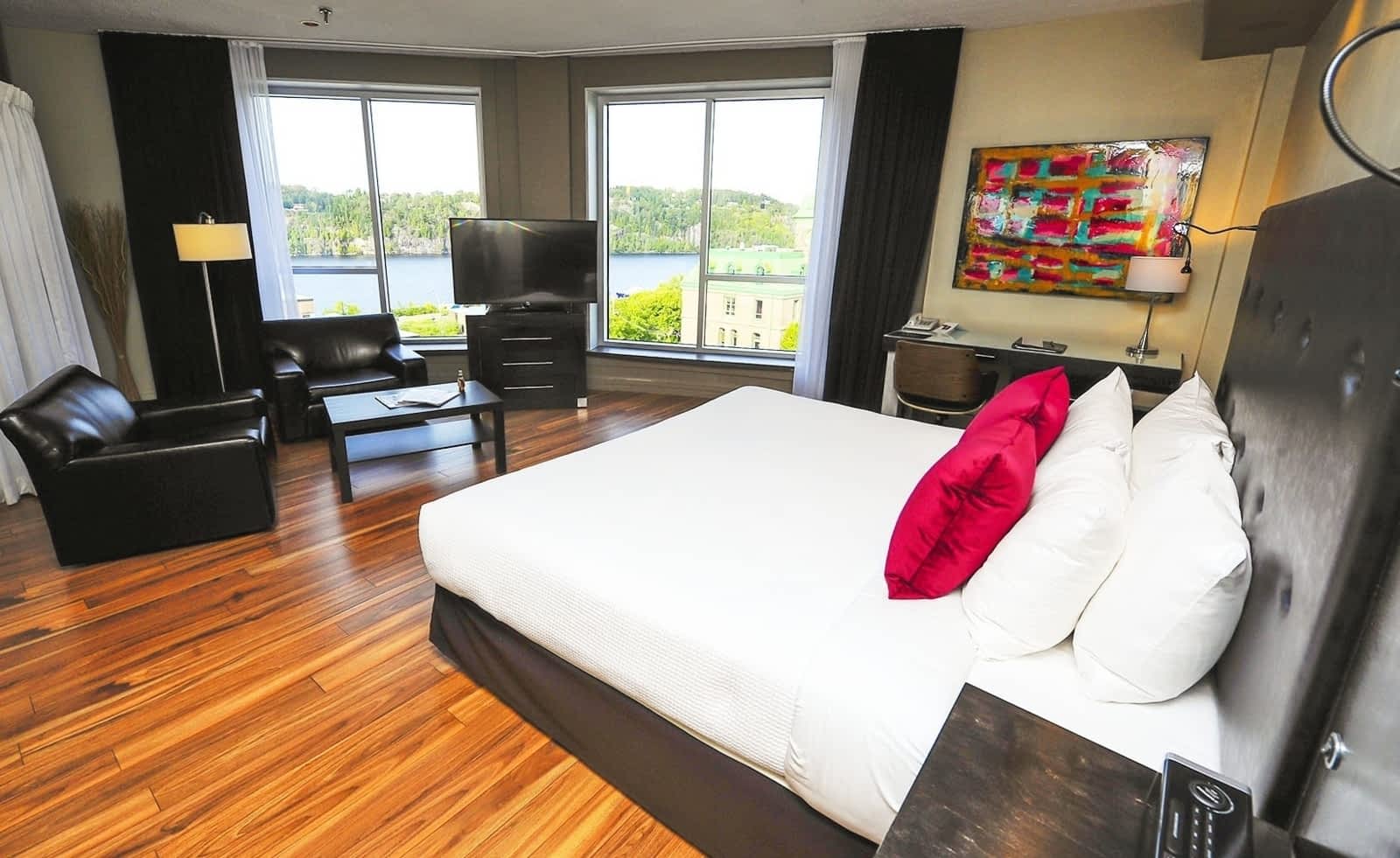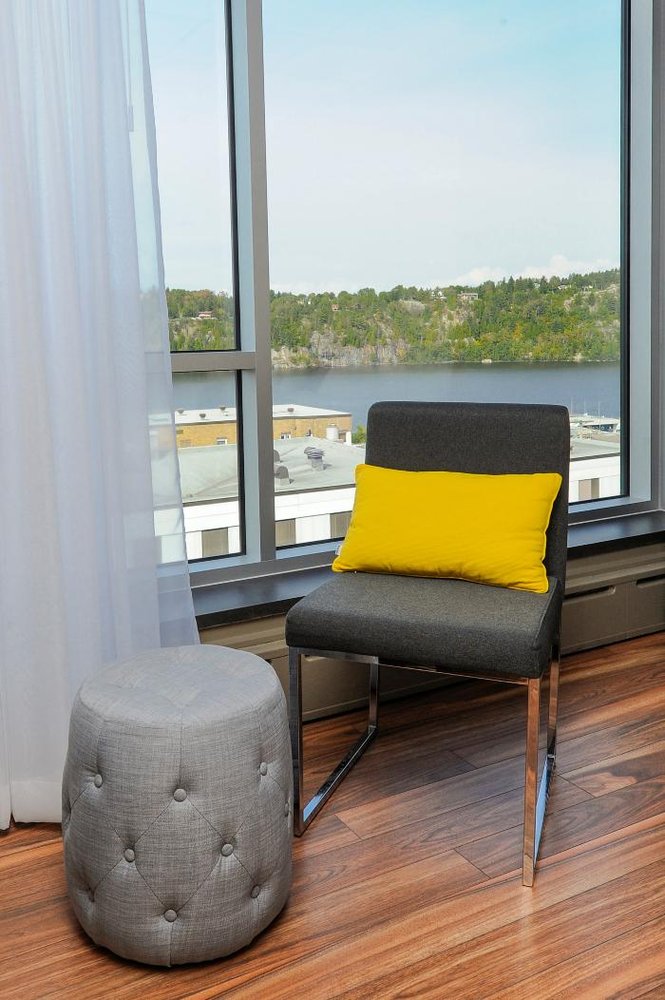 Hotel Chicoutimi is a well-reviewed hotel that offers a generally positive experience for guests. The rooms are described as comfortable and tastefully decorated, with modern and elegant furnishings. Guests appreciate the impeccable service and attentive staff, who provide thoughtful touches that enhance the stay. The hotel's location is also praised, with easy access to restaurants and the harbor. The included breakfast receives good reviews, with a made-to-order menu and quick, friendly service. However, a few areas for improvement were noted. Some guests found the rooms a bit dark due to the furniture color, and there were issues with the water temperature in the showers. A few guests also commented on the lack of maintenance in certain areas, such as the bathrooms. The layout of the hotel was also a point of concern, with an unattractive back entrance and no elevator or ramp access, making it difficult to navigate with luggage. Additionally, some guests felt the value for money was not quite there, and noted a shortage of staff at times. Overall, Hotel Chicoutimi provides a generally pleasant and comfortable stay, with a few areas that could use some attention to enhance the guest experience further.