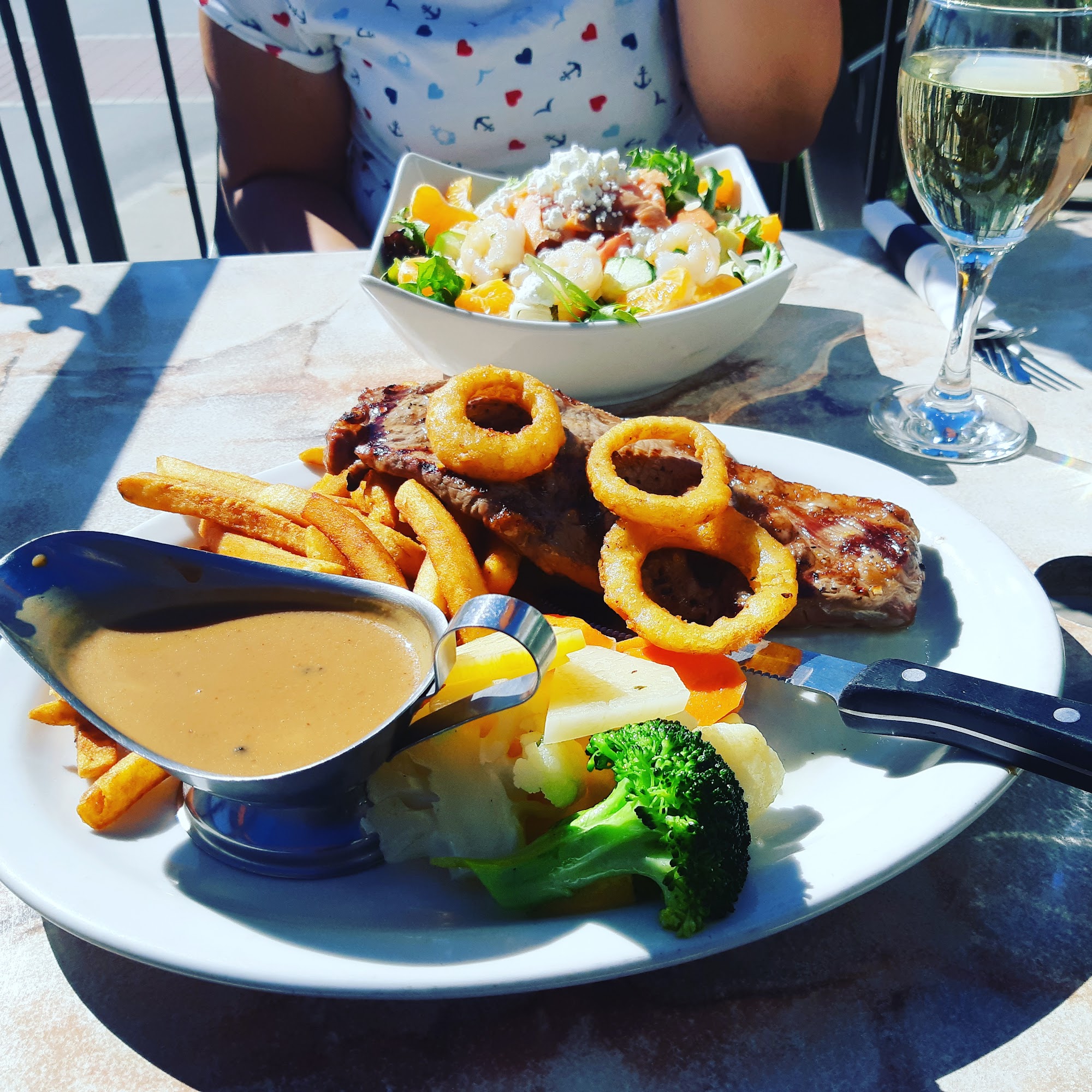 The FORUM, Super nice terrace on the water's edge, MEDIOCRE food. .