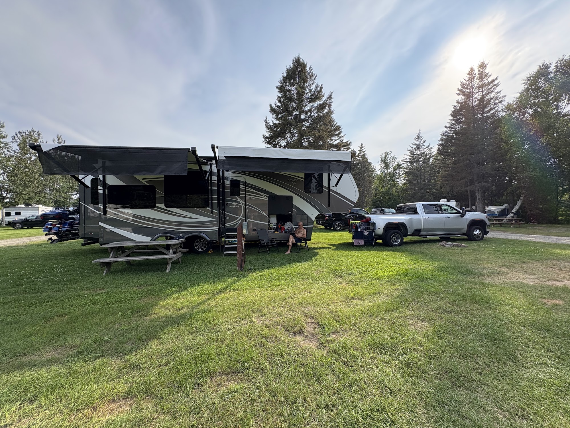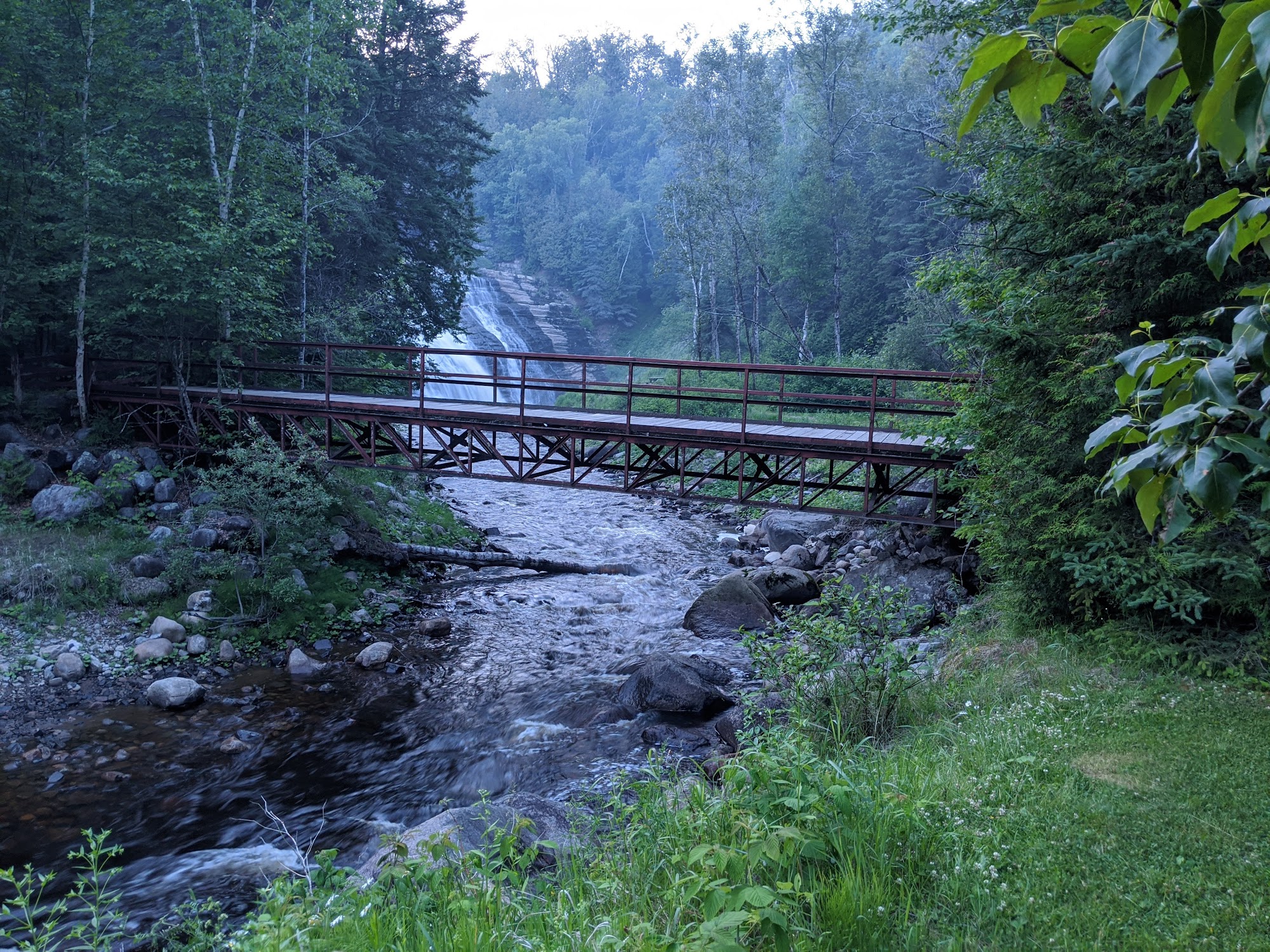 Camping Chutes Fraser, established in 1962, is a premier camping destination in the Charlevoix region. Renowned for its unique and breathtaking waterfalls, the campsite offers visitors a peaceful and tranquil retreat amidst nature. Campers unanimously praise the site's exceptional facilities, including electricity, running water, laundry, hot showers, toilets, and sinks. The campground also provides convenient amenities such as an on-site grocery store, snack bar, firewood, and fishing supplies. Visitors can enjoy proximity to local attractions, including the town of La Malbaie and Charlevoix Casino, as well as a variety of nearby restaurants. The campsite is well-maintained, with spacious and secluded campsites, offering stunning views of the sunset and the impressive waterfall. Campers consistently highlight the cleanliness of the facilities, the friendly staff, and the overall tranquil atmosphere, making Camping Chutes Fraser an exceptional choice for a peaceful and enjoyable camping experience.