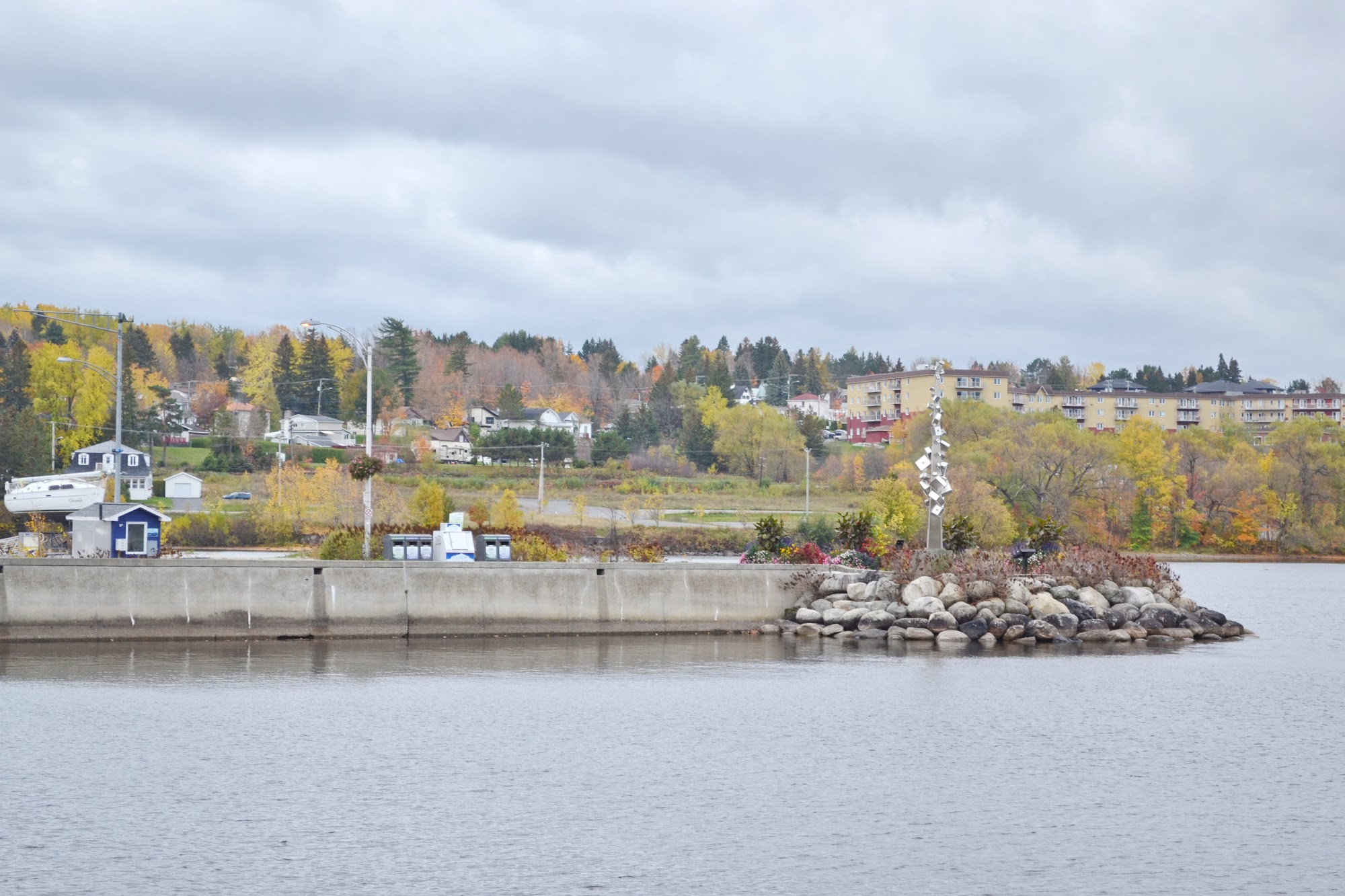Nice visit to Lac Mégantic park. Calm, peaceful. It's 9 degrees on February 10, 2024. Weird winter, little snow. We see the frozen lake, a beautiful Marina. Hello special for our veterans ?? and the visit ended with a beautiful rainbow. ?
