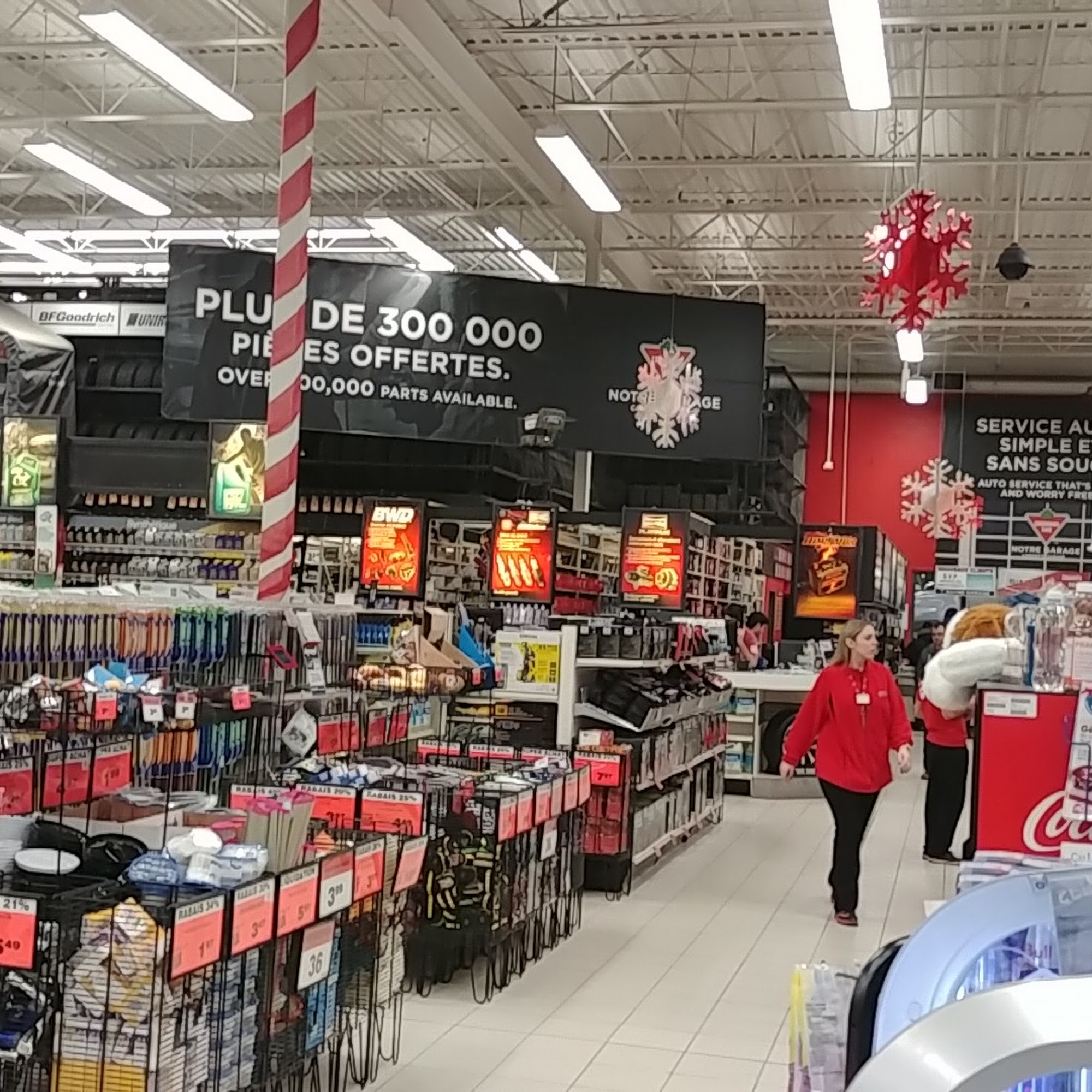 Canadian Tire in Pincourt, Quebec, is a large store offering a wide range of products including automotive parts, tools, hardware, sports gear, household items, and outdoor equipment. It also features a center auto for vehicle repairs and maintenance. Customers appreciate the helpful and polite staff, especially at the customer service desk. The store provides good options at competitive prices, though it can be overpriced at times. Visitors often find a good selection of car parts, accessories, and tools, with popular brands like Mastercraft. The store has ample parking and clean bathrooms. However, there are sometimes long lines and stock availability issues, and more staff would improve the shopping experience. Overall, it is a convenient place to find many items needed for home, auto, and outdoor needs.