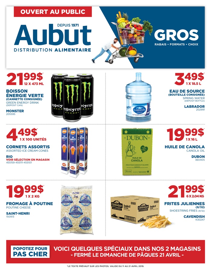 Avec plus de 50 ans dans le domaine de la distribution alimentaire, Distribution alimentaire offre plus de 12 000 produits à des prix très compétitifs, aussi bien pour les restaurateurs, les dépanneurs, les traiteurs que pour le grand public. Nous proposons une grande variété de produits alimentaires, ainsi que des articles de cuisine et d'entretien, disponibles dans de nombreux formats.