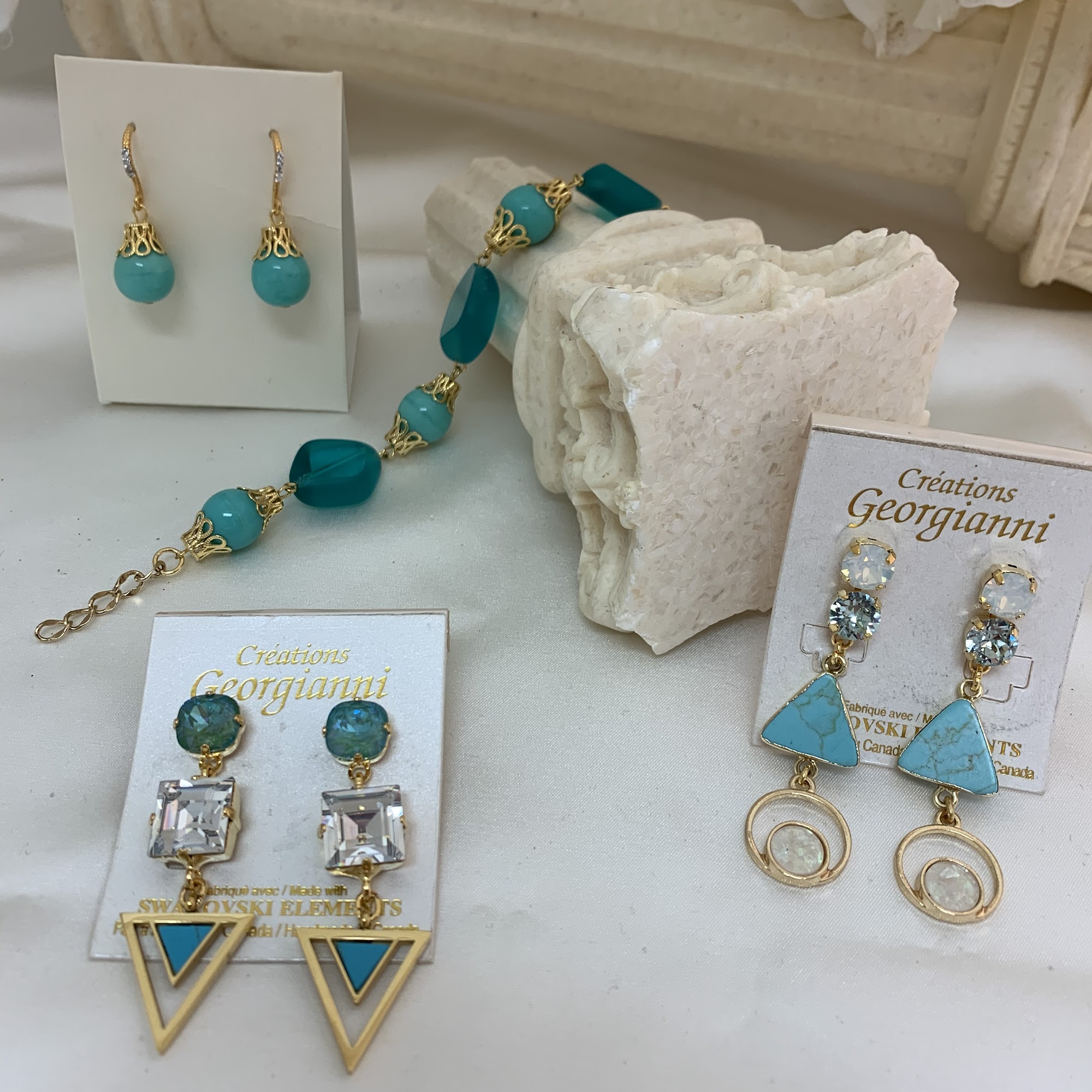 Creations Georgianni is a family-owned business established in 1995 that specializes in designing and manufacturing high-quality, elegant accessories for women. The shop offers a wide range of jewelry including necklaces, earrings, bracelets, brooches, and pearl jewelry, as well as bridal jewelry, headpieces, tiaras, and custom designs. They also carry well-known Canadian clothing brands such as Joseph Ribkoff and Frank Lyman, featuring casual, sportswear, and special occasion dresses. Customers appreciate the personalized and attentive service provided by the owner and staff. Many mention the patience and care shown when helping select the perfect accessories for weddings and special events. The jewelry pieces are described as unique, timeless, and of high quality, often handcrafted with love using crystals, pearls, and semi-precious stones. Customers who traveled from outside the area, including from Newfoundland, noted the staff’s kindness and willingness to stay open late to assist them, ensuring a relaxed and enjoyable shopping experience. The store is especially praised for its beautiful selection of bridal accessories, headpieces, and custom options. Customers highlight the craftsmanship, lightweight comfort, and the ability to customize pieces to match wedding dresses. While the jewelry is considered higher priced, the quality and handmade nature justify the cost. Overall, Creations Georgianni is seen as a special place for women seeking sophisticated, handcrafted jewelry and accessories for weddings, events, or gifts, supported by excellent customer service and a welcoming atmosphere.