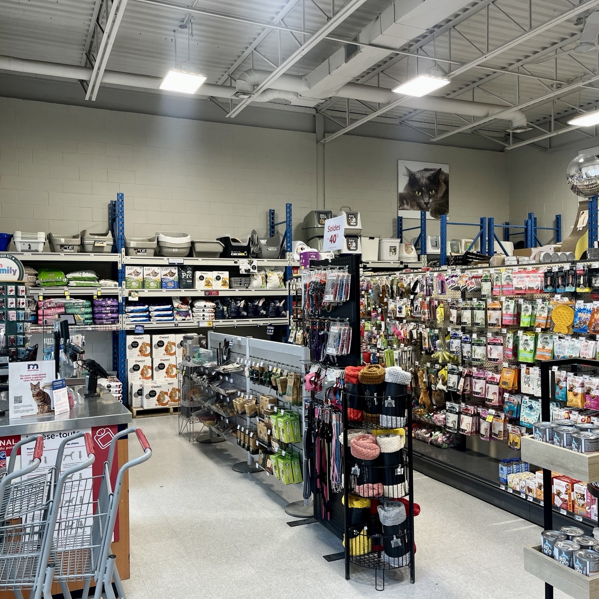 Mondou is a pet boutique offering products and services for the well-being of cats, dogs, small animals, and birds. The store is spacious and clean with convenient parking. It carries a wide range of options, including various food choices and an extensive selection of accessories, and shelves are consistently well-stocked. The staff is super friendly, incredibly kind, sweet, helpful, and warm, always eager to help and spend a tremendous amount of time explaining everything. The team is interested in meeting the needs of animals and provides services like assistance to the vehicle. With over 90 stores in Quebec and online shopping with home delivery, it is a highly recommended go-to destination for pet owners.