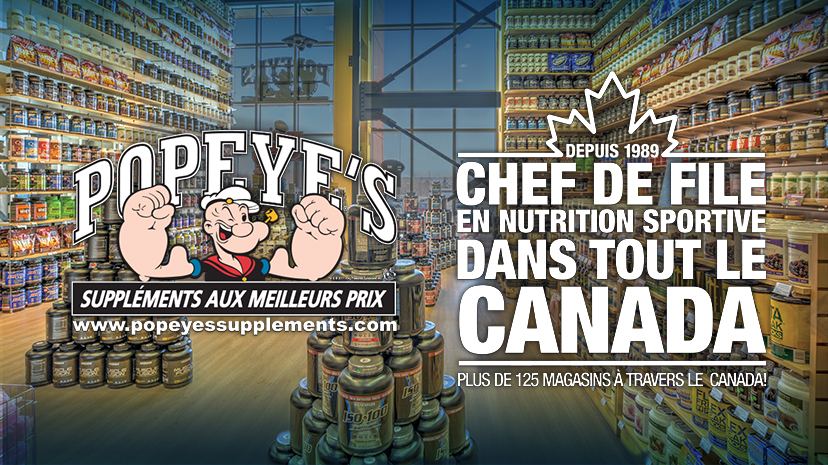 Popeye’s Suppléments Laval vous propose une gamme incomparable de suppléments tels que protéines, brûleurs de gras, créatine et plus. ***** At Popeye’s Supplements Laval you will find the best supplements available. Protein, fat burners, weight gainers, creatine, vitamins and more.