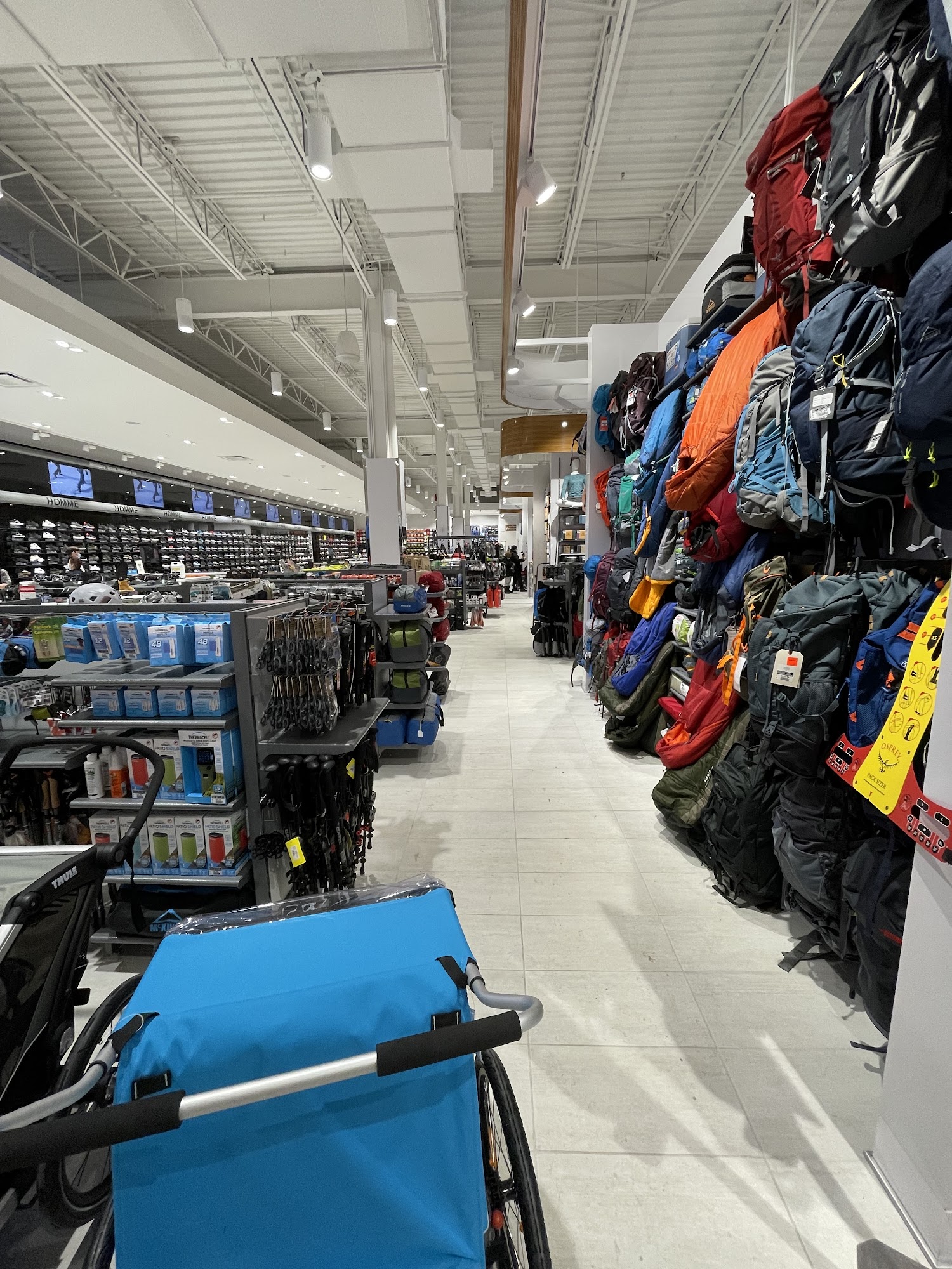 Destination de choix pour les articles de sports et de plein air, le magasin combo Sports Experts et Atmosphère offre un environnement dynamique et est soucieux de combler les besoins des familles actives et des sportifs aguerris. Vous y trouverez tous les essentiels pour vos activités athlétiques et vos journées en nature comme le kayak, le vélo, le camping et la course à pied. / The Sports Experts and Atmosphere combo store offers a dynamic environment and is concerned to meet the needs of active families and athletes, making it the destination of choice for sports and outdoor items. You will find all the essentials for your athletic activities and your days in nature such as kayaking, biking, camping and running.