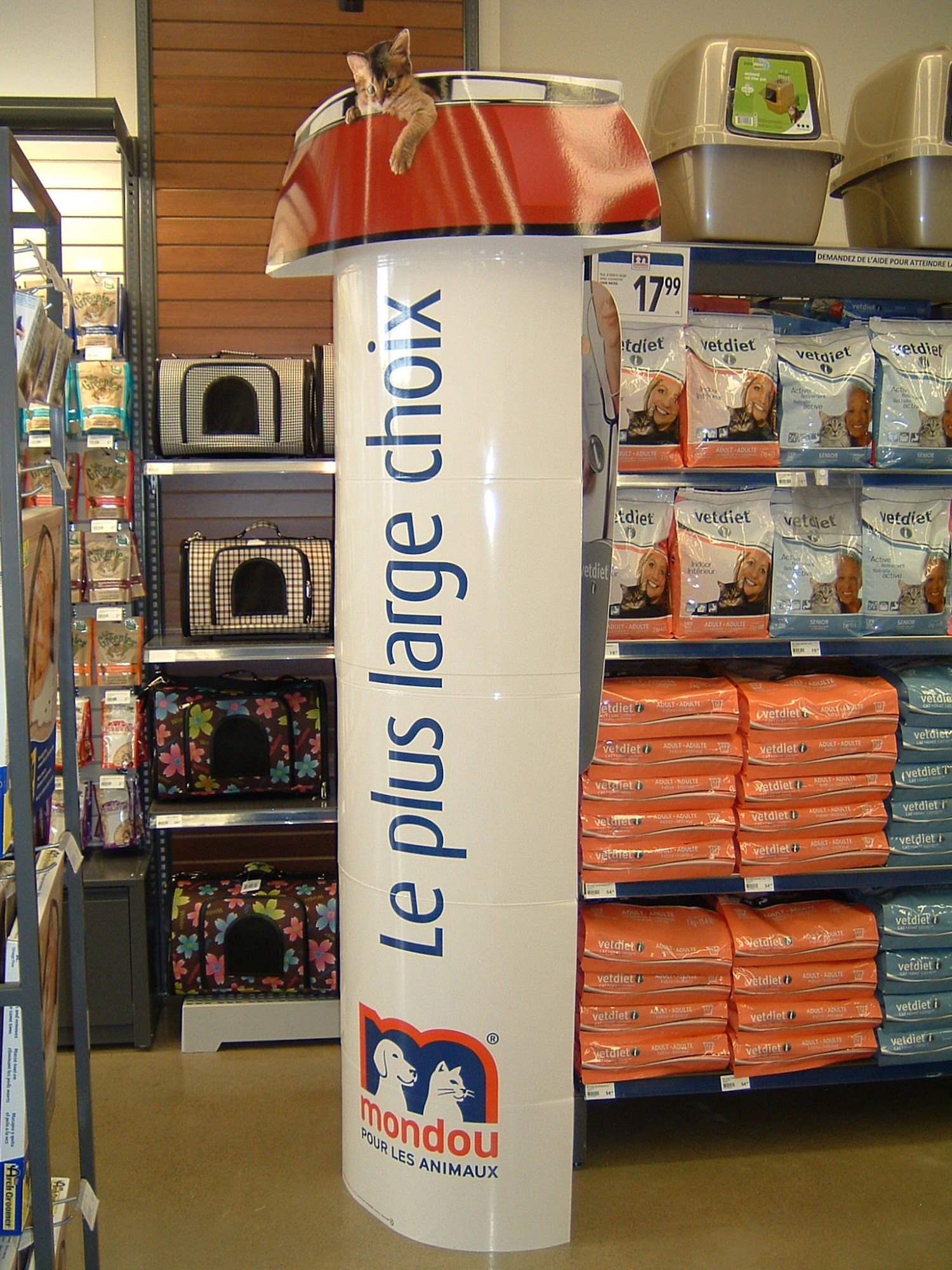 La boutique pour animaux Mondou est une animalerie qui offre des produits (nourriture, accessoires, jouets, suppléments, etc.), services (Lave-toutou, Coupe-griffes, Pèse-toutou et Service au véhicule) et conseils spécialisés pour le bien-être et la santé des animaux de compagnie (chats, chiens, petits animaux et oiseaux) à travers plus de 90 magasins au Québec et en tout temps sur la boutique en ligne de Mondou avec la livraison à domicile.