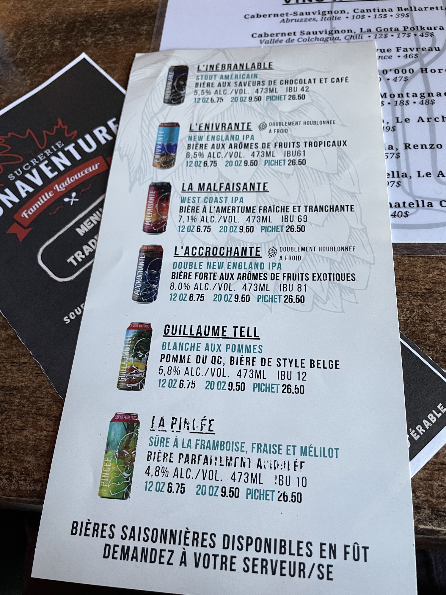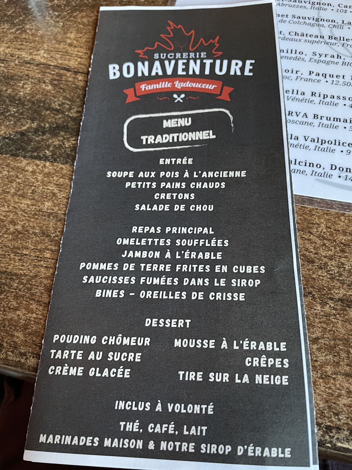 Beautiful place with a good vibe, they sat us in the microbrew while having the sugar shack menu. Best of both world. We were able to watch the Habs game while eating lots of food! Will be back for sure. Menu is 35$ plus taxes