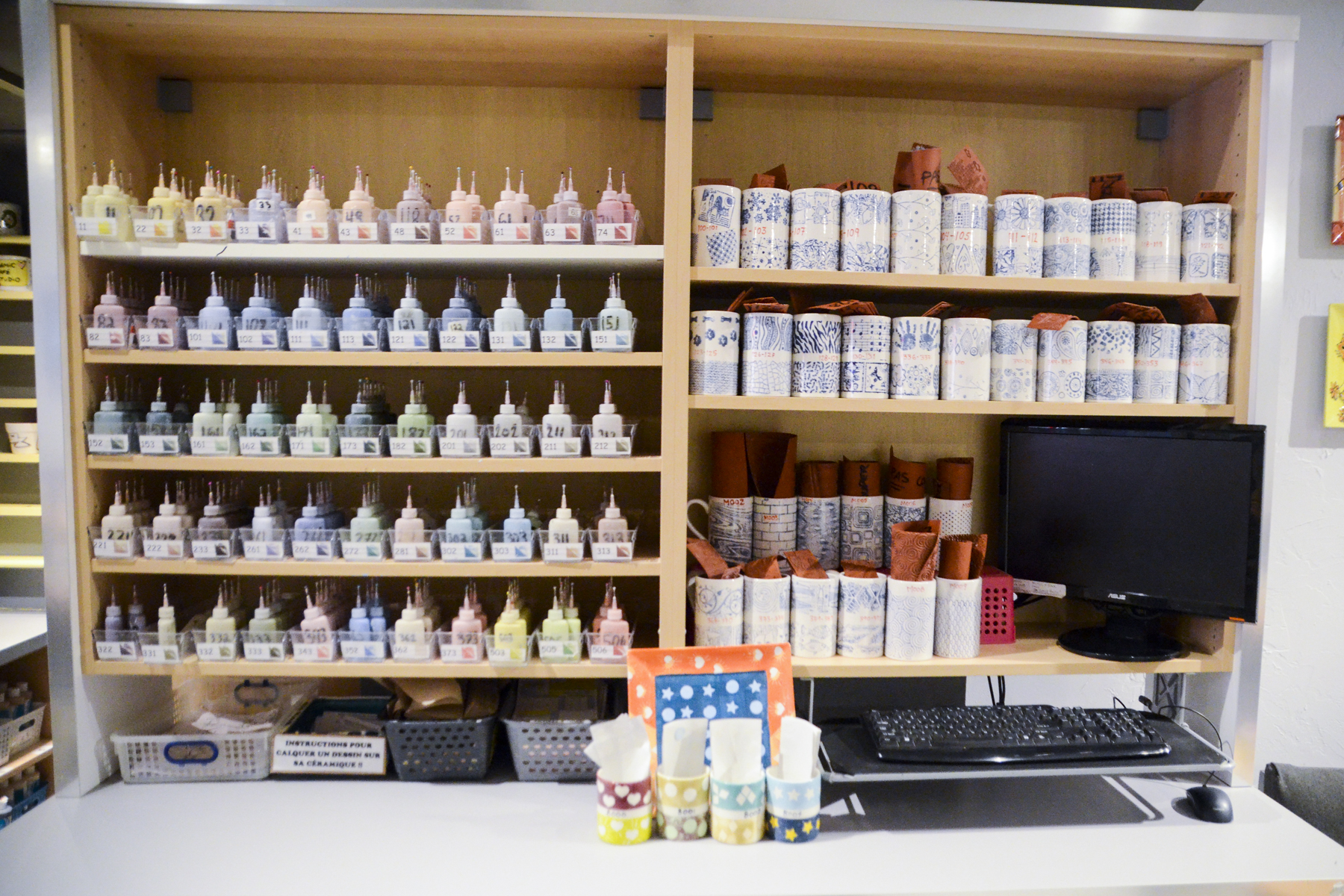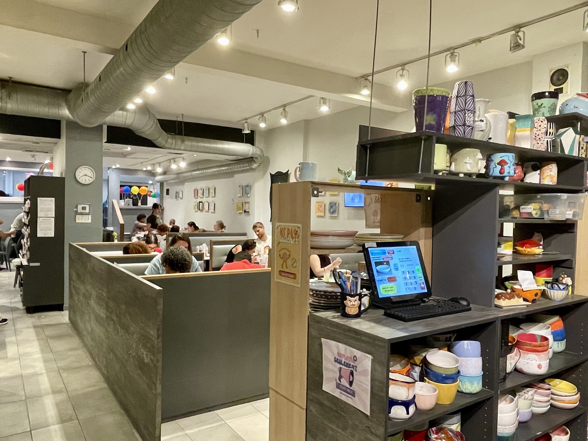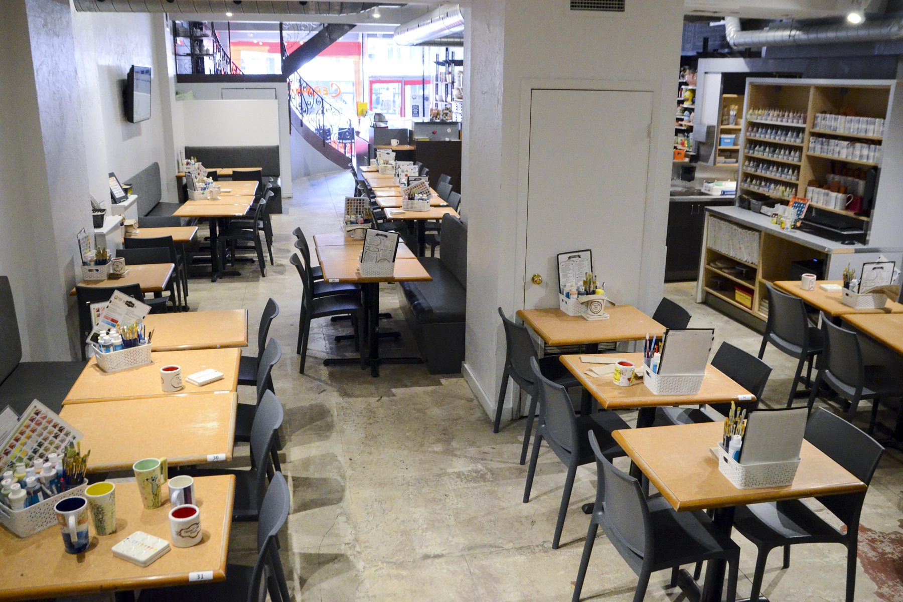 Staff was OK. Showed almost no enthusiasm? Seemed like they all didn't want to be there. We were there on a Wednesday. Place was clean. Had fun decorating :)