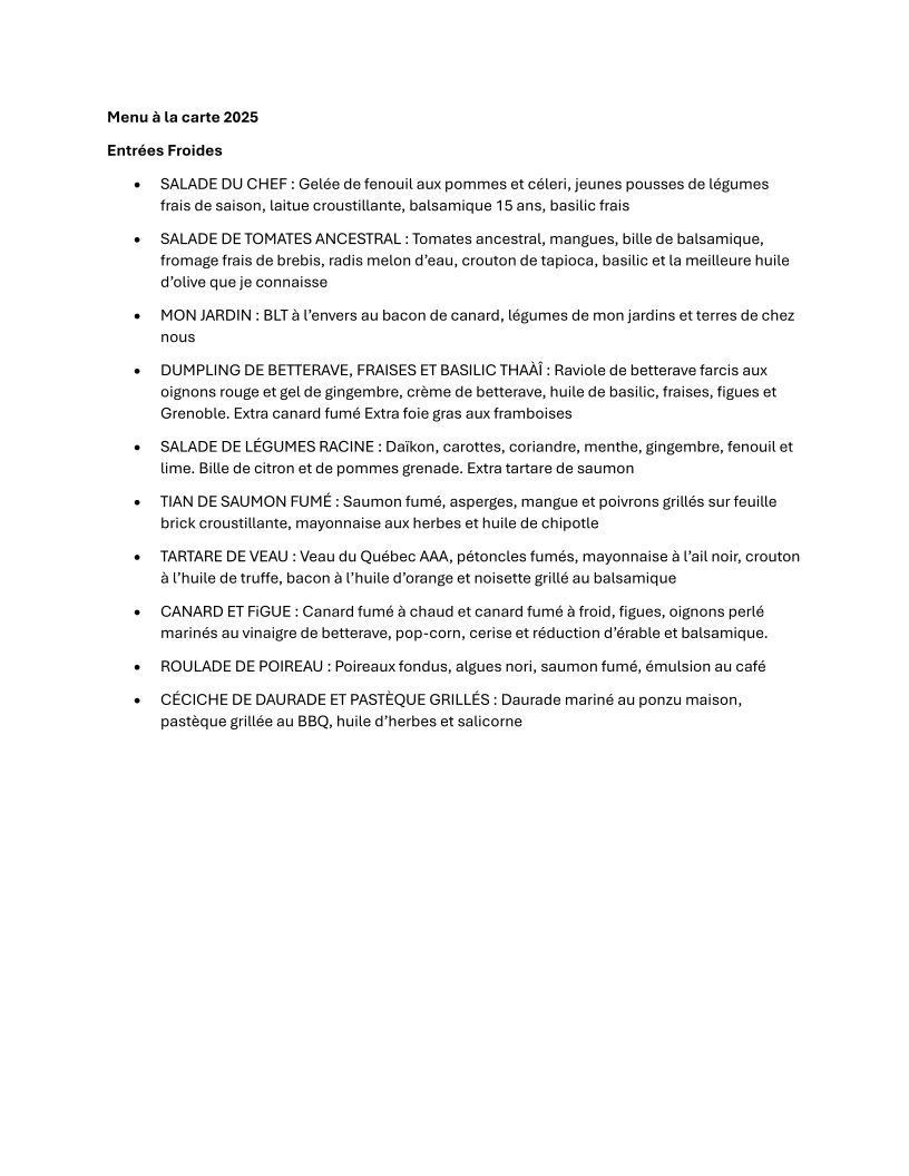 Le Tour du Chef vous propose une expérience gastronomique unique avec 22 ans d'expertise en cuisine raffinée. Spécialiste des cocktails dînatoires et des repas 4 à 9 services, notre chef à domicile sublime vos événements avec un menu à la carte et des tables d’hôtes. Découvrez nos canapés, entrées, plats du Québec, fromages et desserts, ainsi que nos tableaux culinaires. Que ce soit végétarien, terre ou mer, chaque assiette est un voyage gourmand. Offrez à vos invités une expérience culinaire mémorable avec Le Tour du Chef !