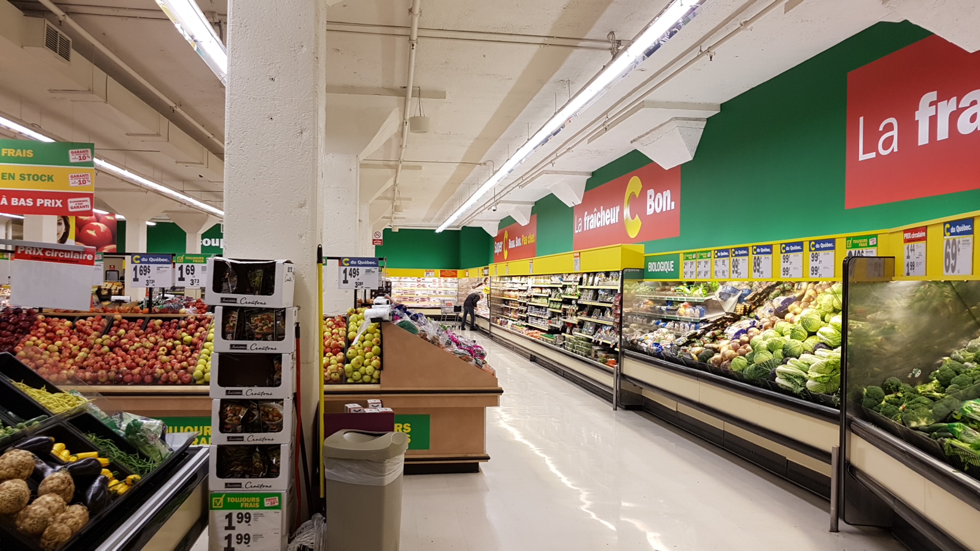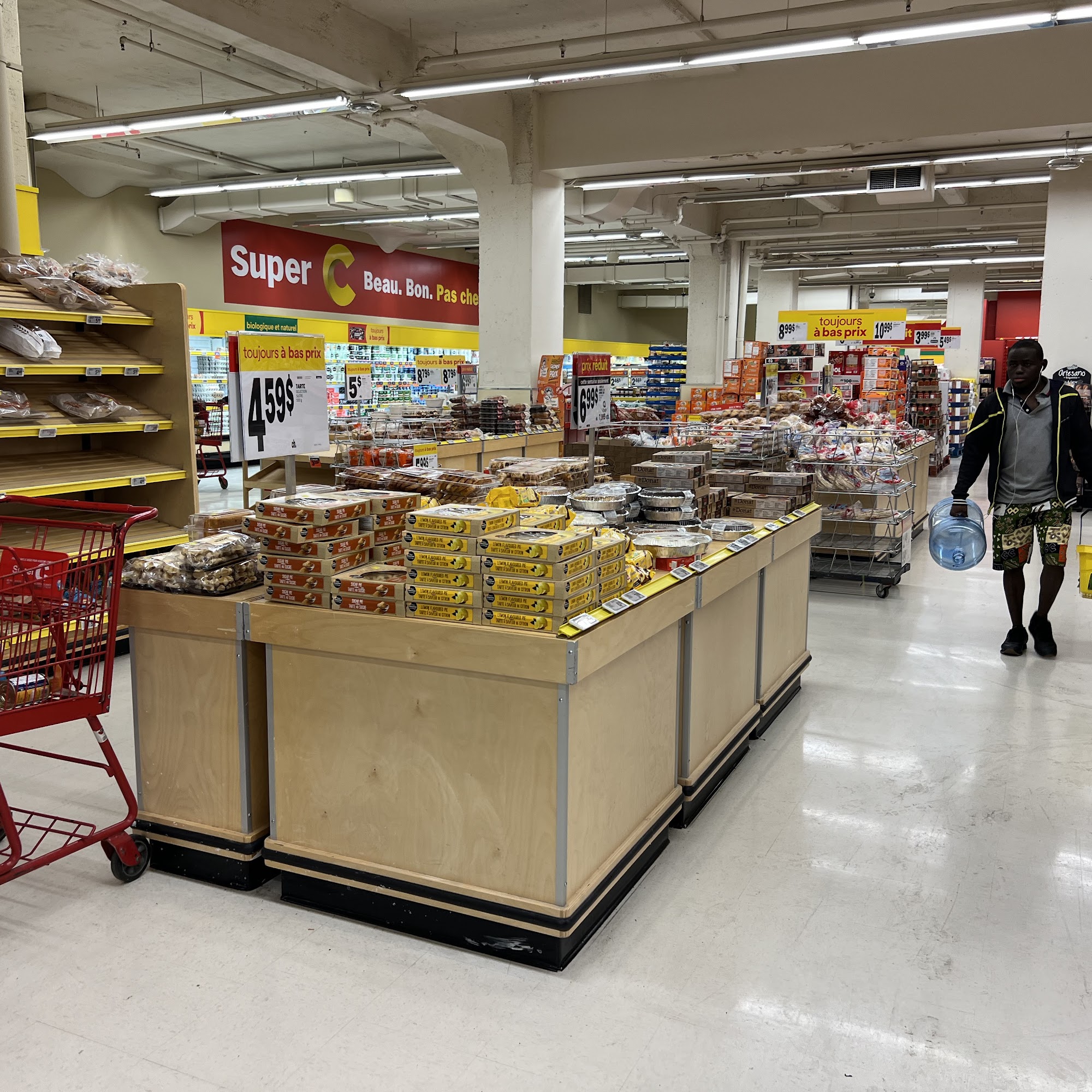 Super C is a well-placed, spacious, and clean grocery store that offers a wide variety of fresh, high-quality products at low prices. The store is bright, lively, and welcoming, making shopping a pleasant experience. Customers appreciate the well-organized layout, which helps them find items easily, and the good quality of food that is well preserved. The prices are reasonable, and the store maintains a good selection of fresh fruits, vegetables, dairy, and other products, satisfying many loyal customers. While the store can be crowded, especially on weekends, the staff is friendly and efficient, with lines moving quickly. Recent improvements include more frequent pickup of baskets at the exit ramp, making it safer and easier to pass with strollers or carts. However, some challenges remain, such as shelves occasionally lacking products and cluttered aisles due to trays and boxes, making navigation a bit difficult. Customers are encouraged to put items back in their proper places to keep the store clean and organized, which benefits everyone. Overall, Super C is appreciated for its good service, quality products, and affordable prices. Customers value the efforts of the staff and the store's cleanliness and safety, recognizing it as a place where they can find what they need in a friendly environment. Despite minor issues, it remains a popular and trusted shopping destination for many.