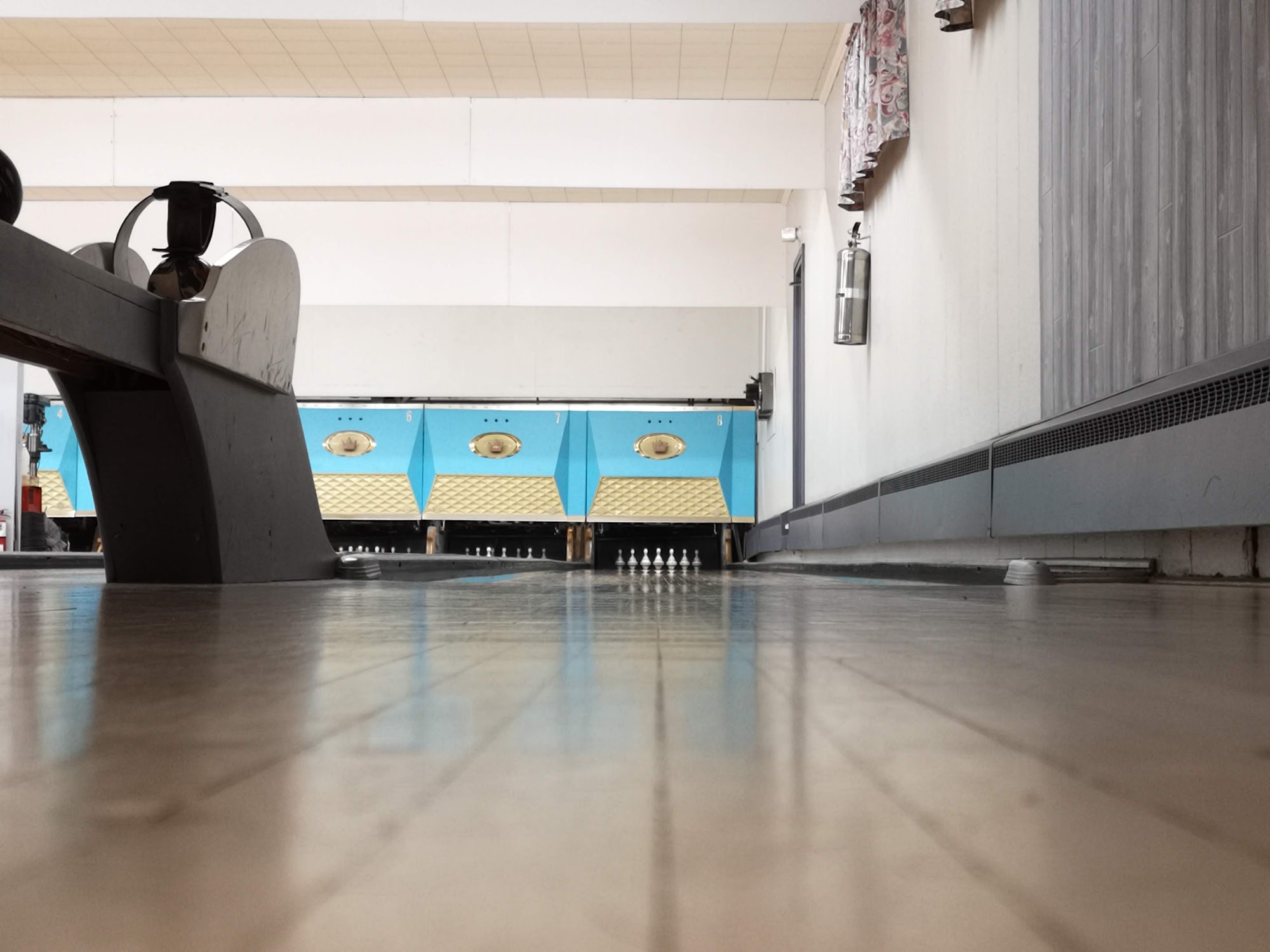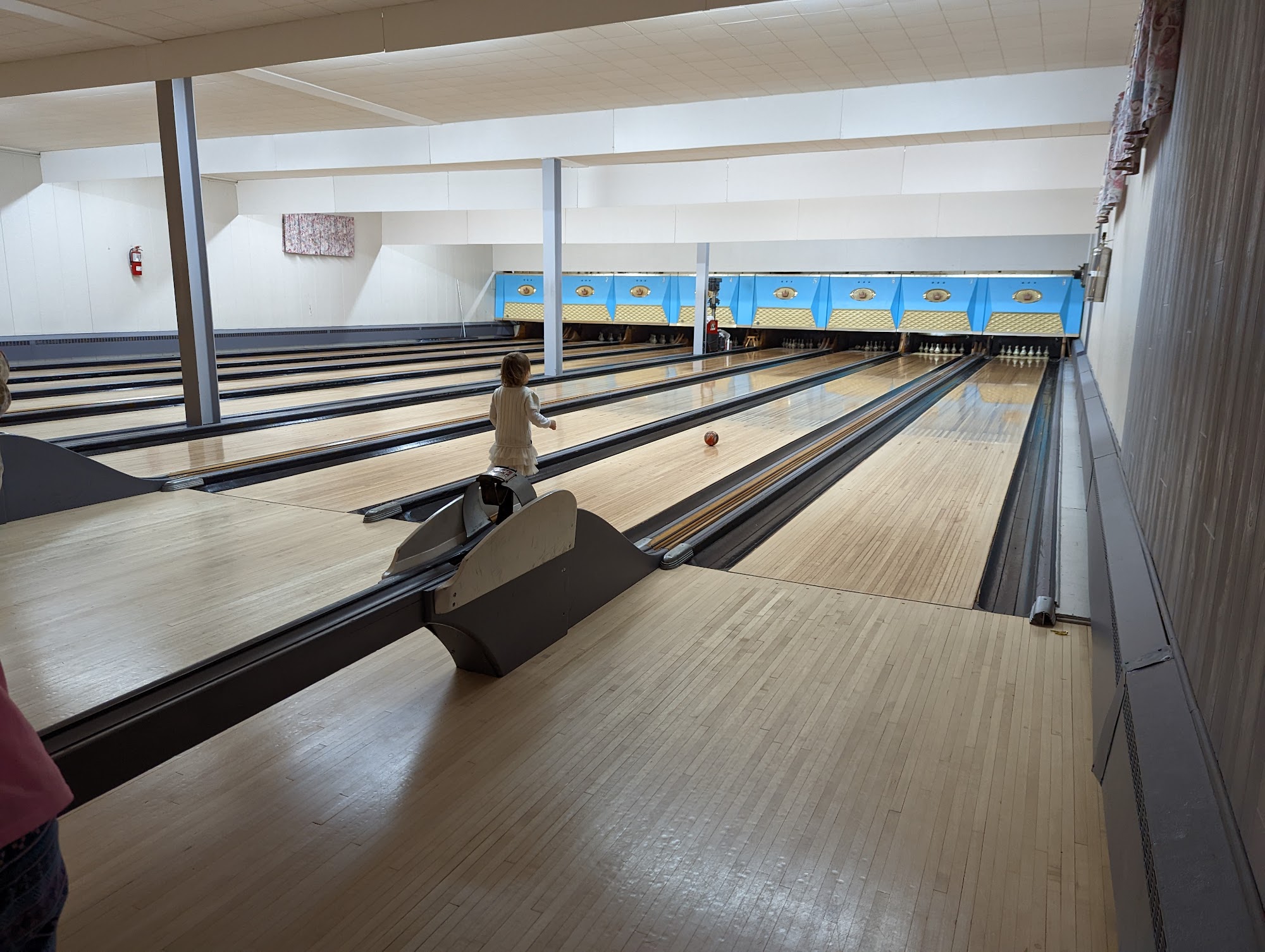 Great place. Like a 60s era bowling place. Very mom/pop shop in a quiet part of Pointe Claire off the highway. Only $30 per hour for all of us and no shoe rental is required as you can wears socks. Everything is manual which is fine. The price is unbeatable and it's a great environment for children. We will be back.