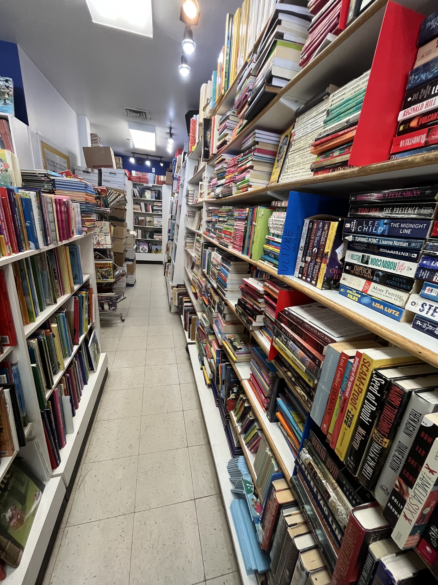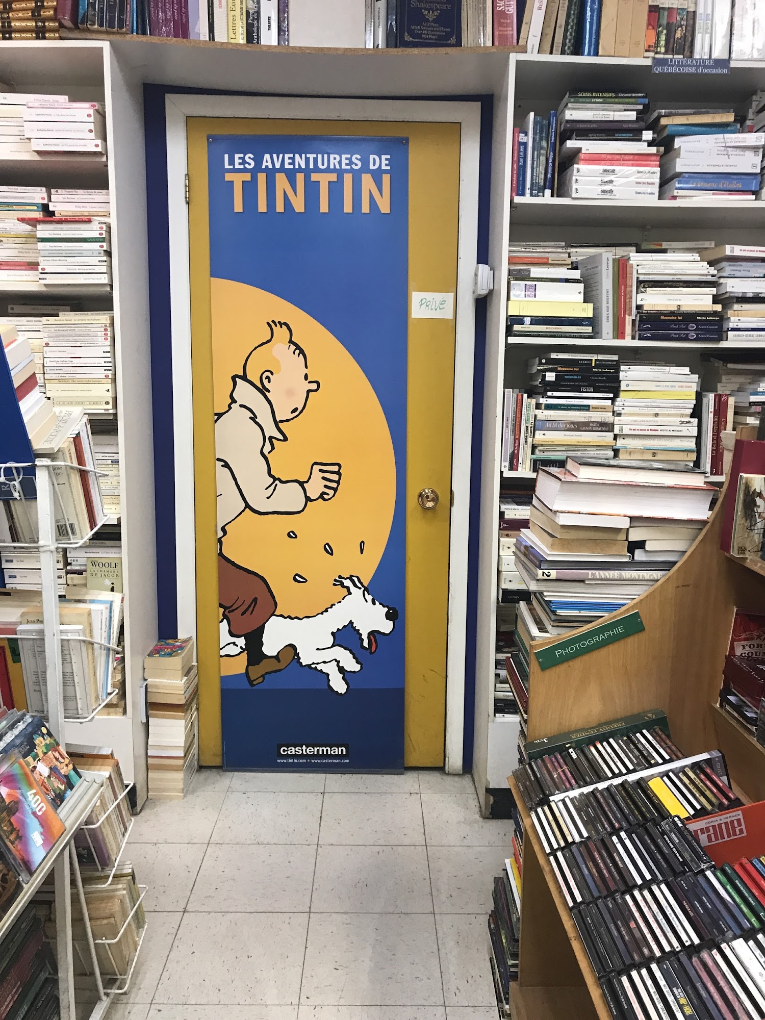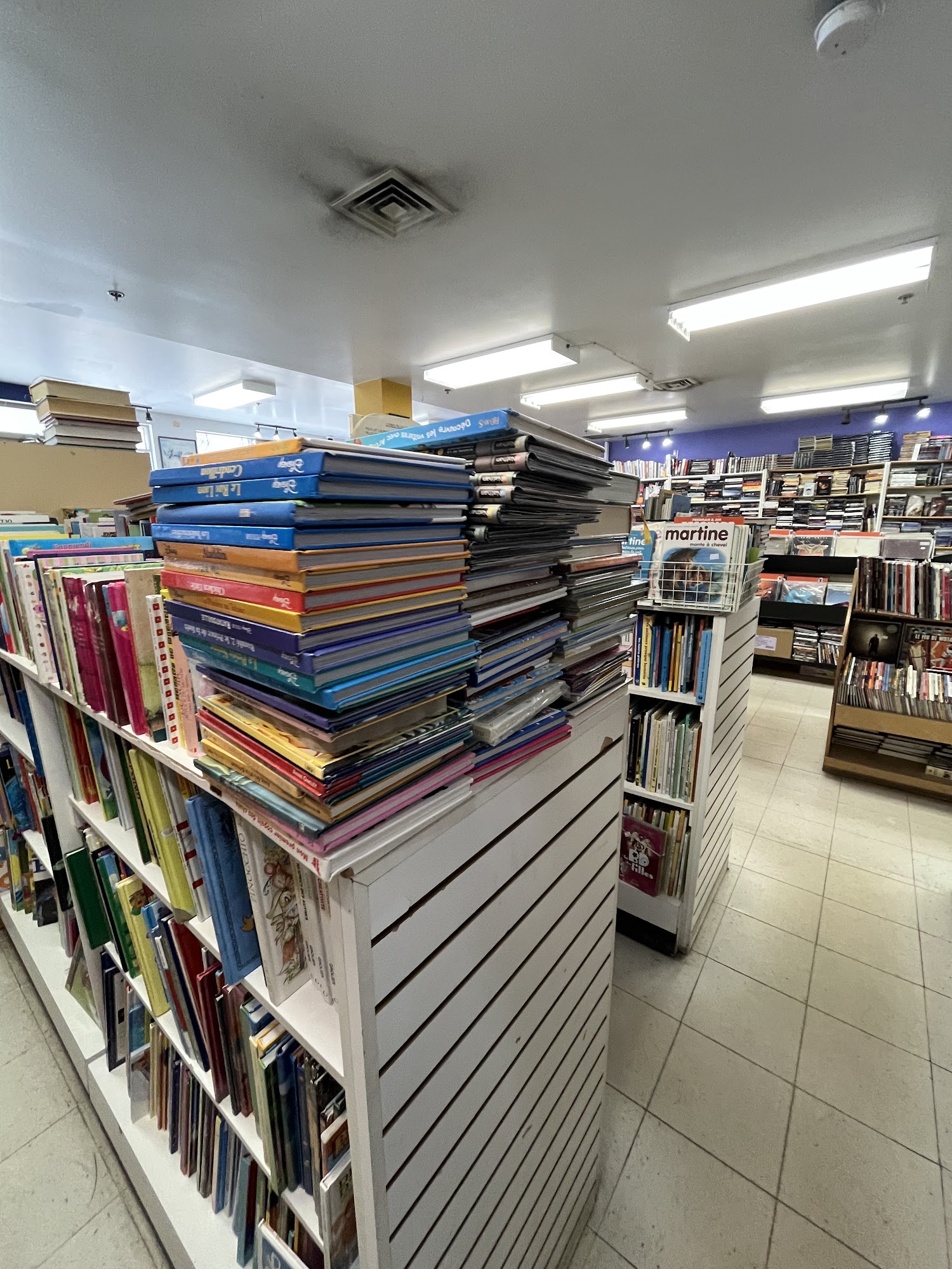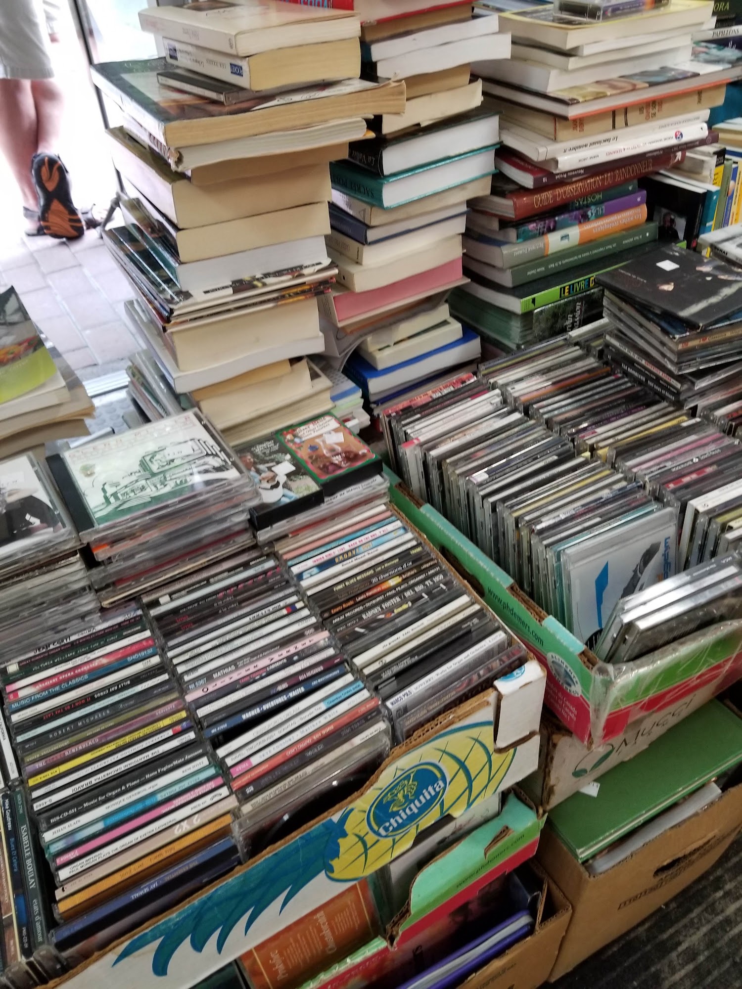 Comptoir du Livre Enr is a cute used bookstore located across from the library. It offers books, CDs, and DVDs in abundance. The shop has a good collection of CDs and mostly French books, with a section of English novels and older non-fiction. The two gentlemen who work there are very competent, nice, and provide good advice. They know their stock well, charge fair prices, and offer excellent service. Everything is well classified and ordered, though the large selection requires time and patience to browse. Customers find rare books, beautiful encyclopedias, and often return again and again.