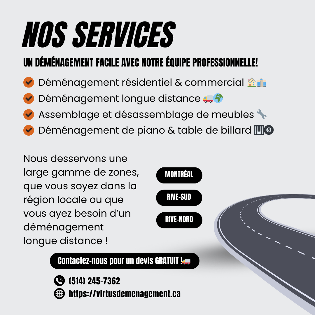 Simplifiez votre déménagement à La Prairie avec notre équipe professionnelle ! Que ce soit pour une maison, un condo ou un bureau, nous offrons un service rapide, fiable et personnalisé. Obtenez une soumission gratuite et profitez d’un déménagement sans stress !
