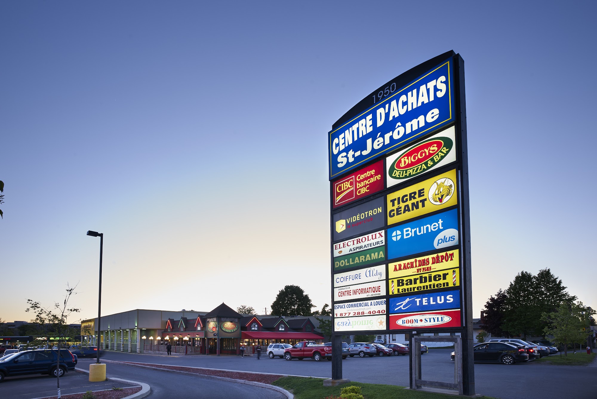 LE CENTRE D'ACHAT ST-JÉRÔME regroupe 15 boutiques et services dont des bannières renommées comme le TIGRE GÉANT, PHARMACIE BRUNET, BANQUE CIBC, DOLLARAMA, des magasins spécialisés et un restaurant tel que Biggy's. Situé au coeur de la ville de St-Jérôme, il constitue l'un des pôles commerciaux majeurs dans la région.