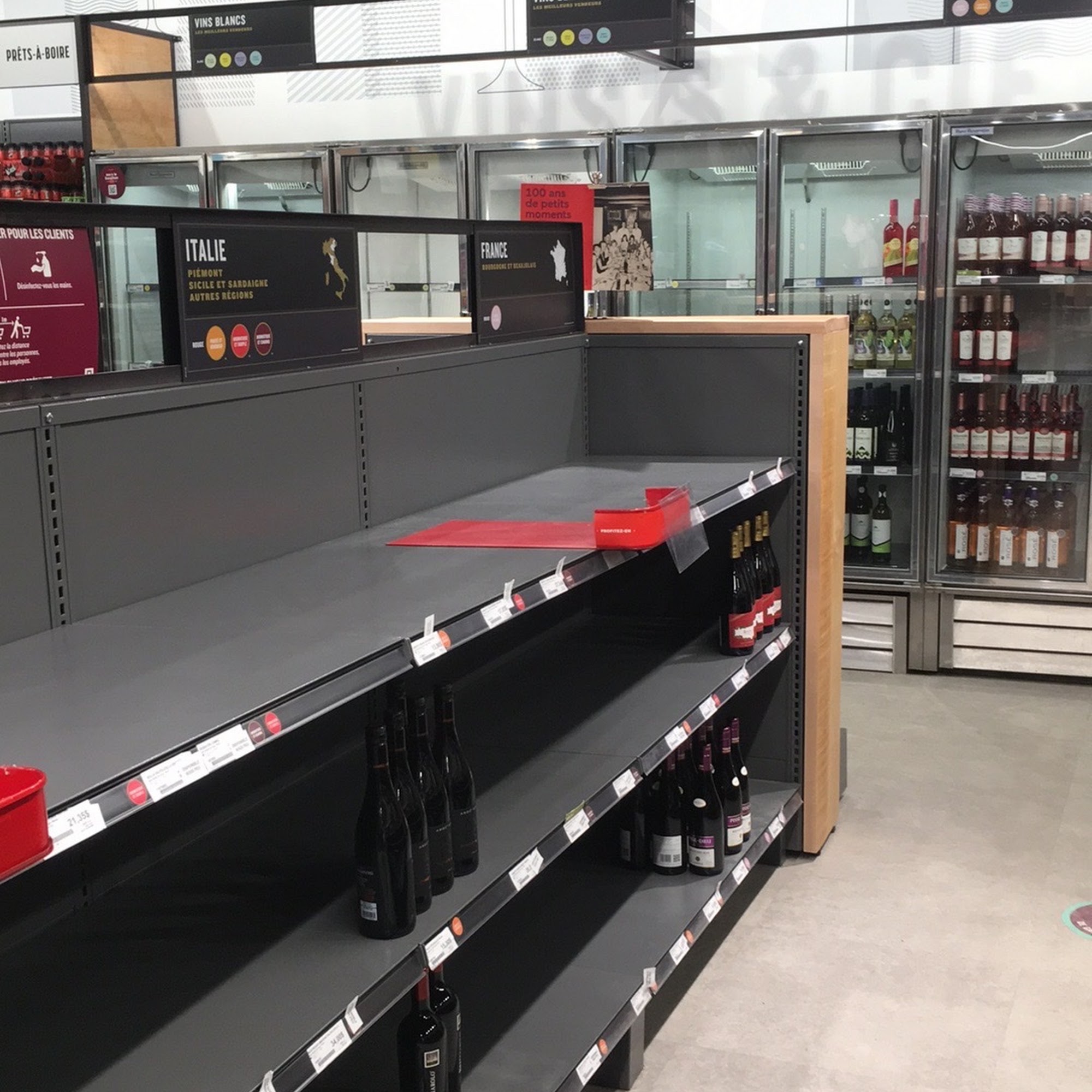 The wall of product boxes that serves as a screen for paying at checkouts is really counterproductive. It's confusing and prevents the flow of the store, already the new SAQ concept is rubbish, it's nothing to help.