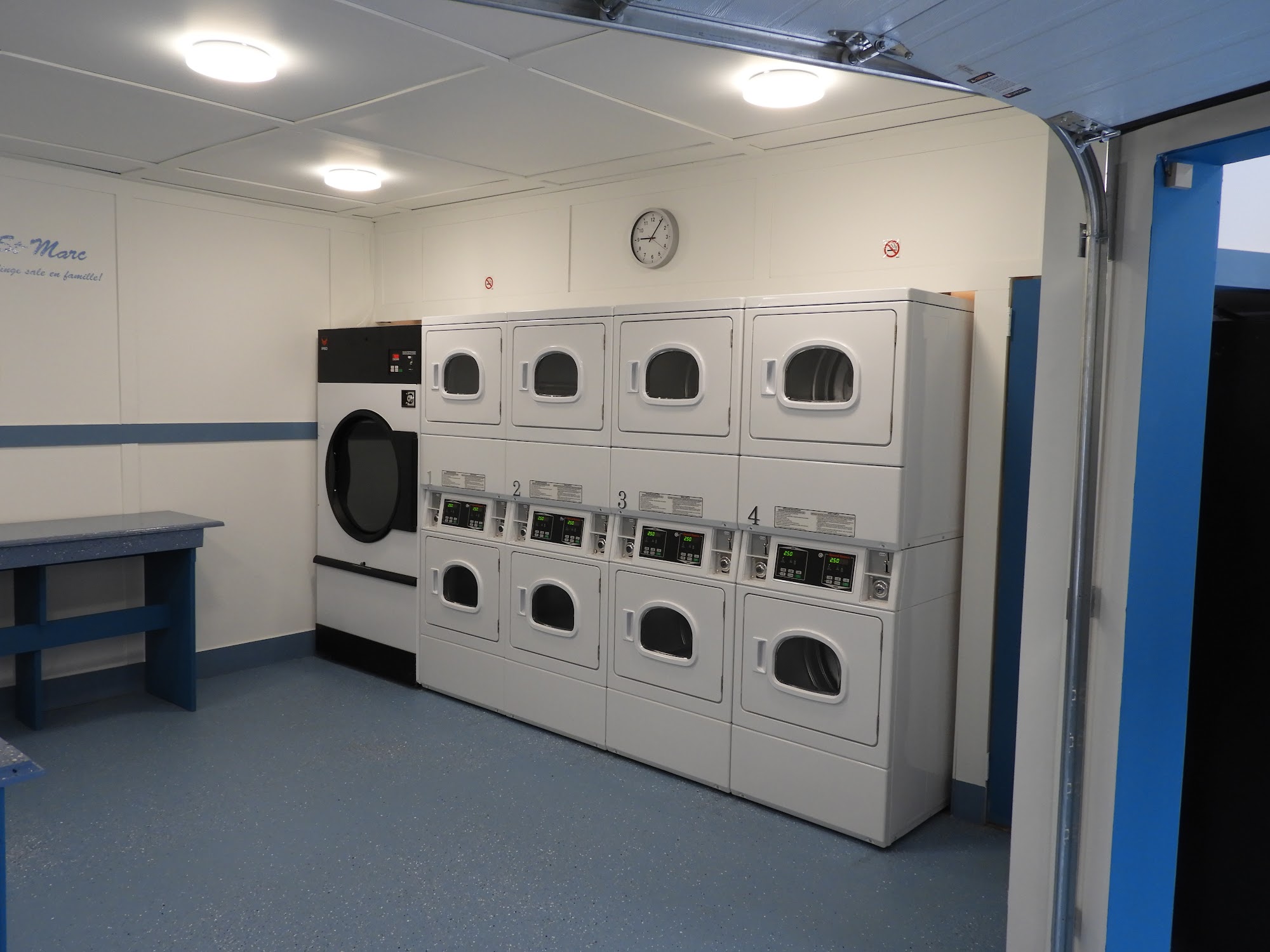 What was my surprise when I entered the utility room: VERY clean, large number of washers and dryers (normal or giant). Opening hours are very accessible. What service I had from the owner. Without hesitation, I recommend this laundry room.