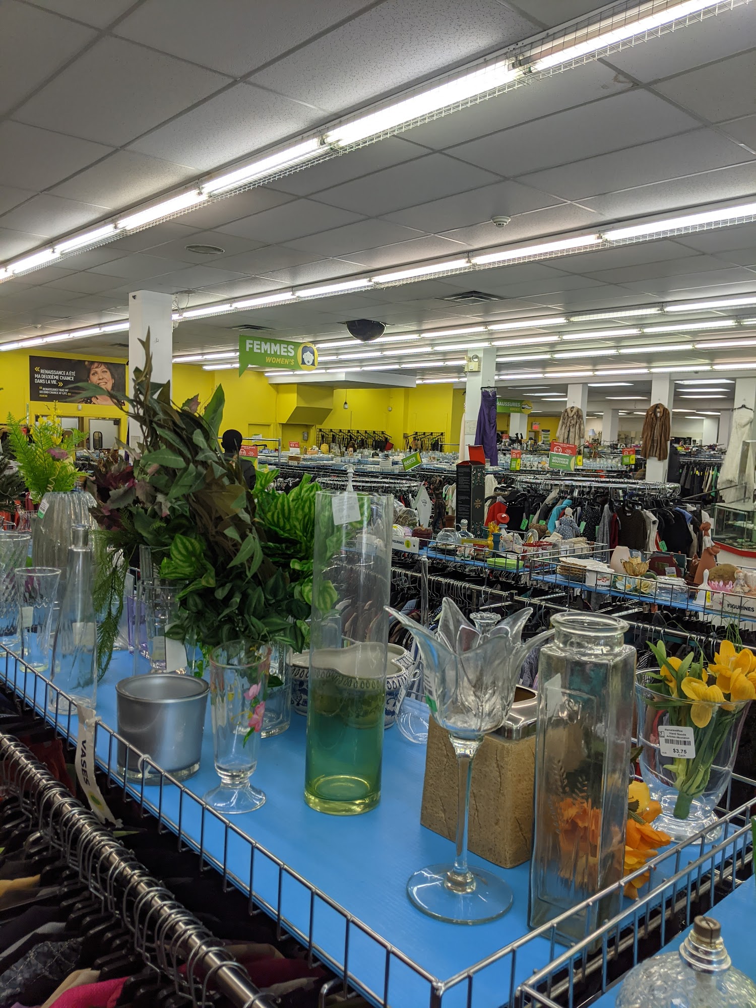 Les friperies Renaissance sont des magasins à grande surface qui offrent un vaste choix d’articles de seconde main de qualité à des prix abordables et sans taxes. Vous y trouverez des vêtements et chaussures pour toute la famille, des accessoires et des bijoux, des articles ménagers, des livres, des jouets, des articles de sport, des appareils électroniques, etc. Donner et acheter chez Renaissance, c’est contribuer à la mission de l’organisme à but non lucratif : faciliter l’insertion socioprofessionnelle de personnes éprouvant de la difficulté à intégrer le marché du travail, tout en suscitant l’engagement de chacun à poser des gestes concrets pour préserver l’environnement. Merci!