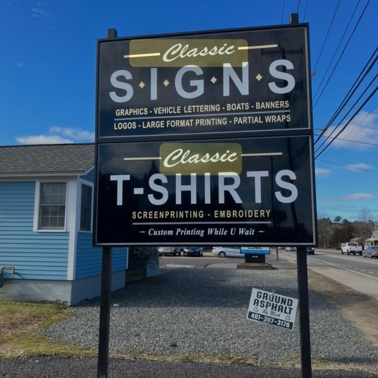 Classic Signs & T-Shirts, located at 912 Tiogue Avenue, is your premier destination for all your signage needs. As a leading sign shop, print shop, and banner company, we specialize in creating custom truck lettering, magnetic signs, and vibrant vinyl signs. Our expertise extends to designing and installing high-quality awnings, eye-catching pylon signs, and professional refacing services. Whether you're looking for top-notch sign installation or unique promotional materials, our dedicated team is committed to delivering exceptional results every time. Choose Classic Signs & T-Shirts for unparalleled service and quality that will enhance your brand's visibility and impact.