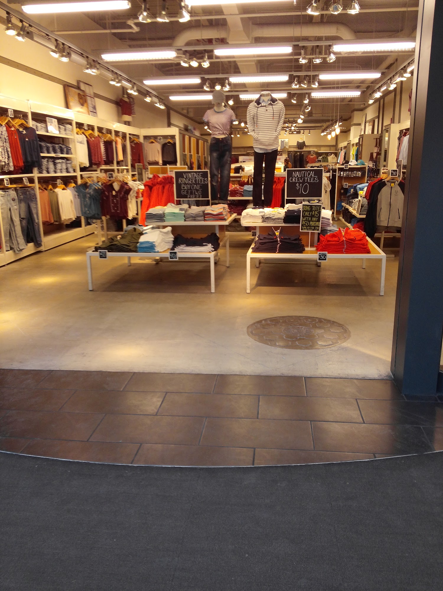 Aéropostale, established in 1987, is a specialty retailer of casual apparel and accessories, offering high-quality denim and fashion essentials at compelling values for young men and women. The store embraces positivity, inclusivity, and acceptance, aiming to inspire confidence for all. Operated by Catalyst Brands LLC, Aéropostale has a large selection of accessories suitable for a wide range of ages. Customers have expressed satisfaction with their purchases, praising the store's merchandise, such as polo shirts, jeans, and sweatshirts. While the store can be crowded due to the extensive product display, the staff at the register are described as very nice, and the checkout process is smooth.