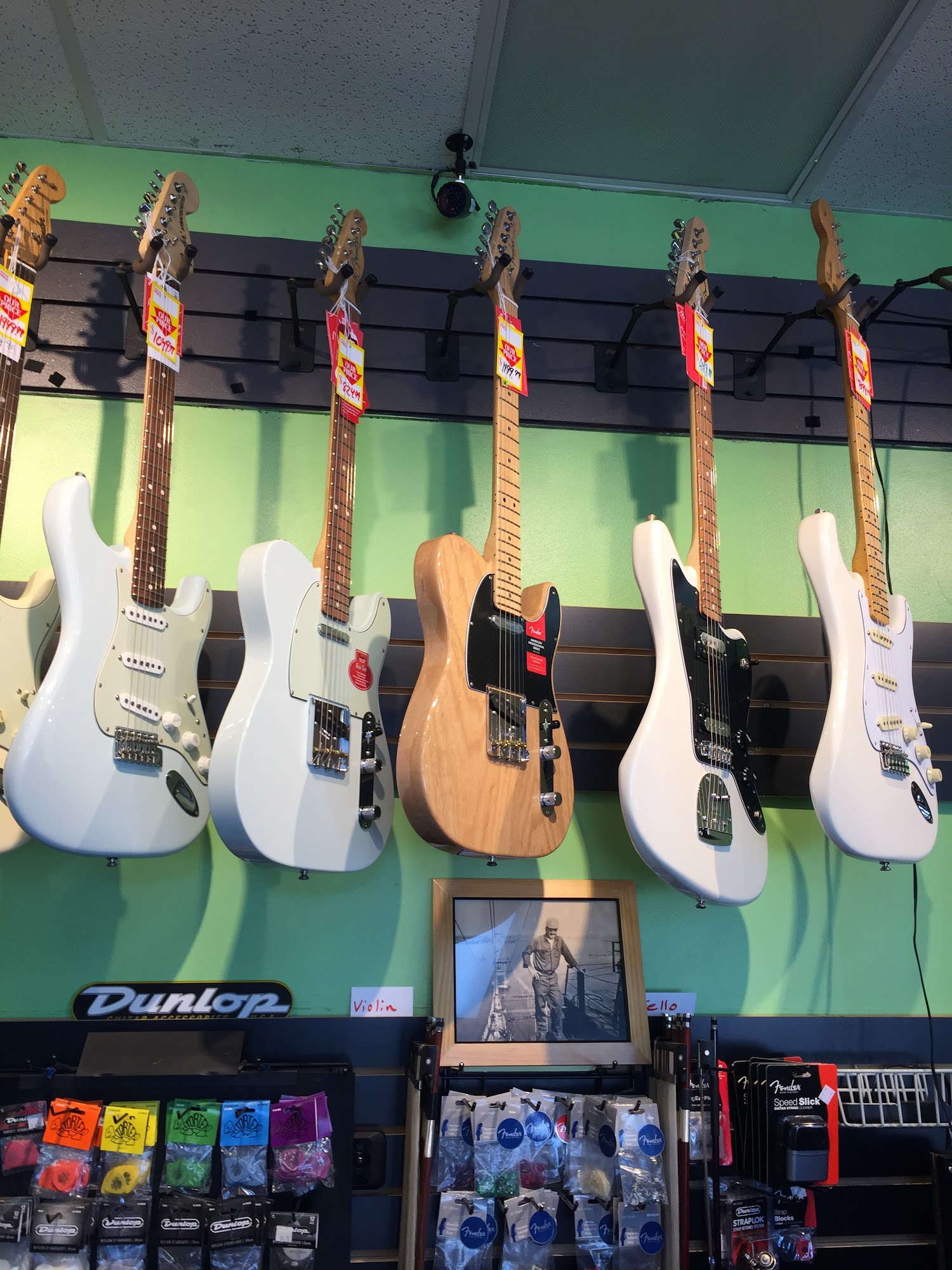 Love ? Dan's Music Center very friendly,Many ? guitar's on the wall an everything from lessons to thee Xtra love you get when they string up your axe on sight. Jude is very knowledgeable. Good Place for all ages to learn an play every musical instrument there is !!!