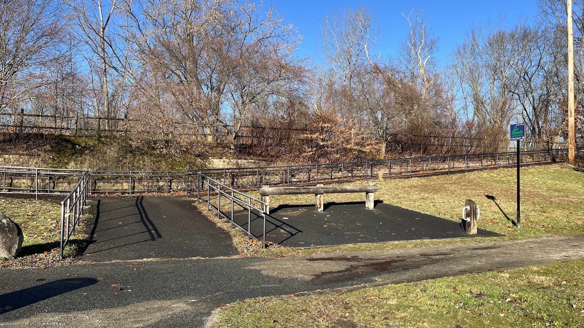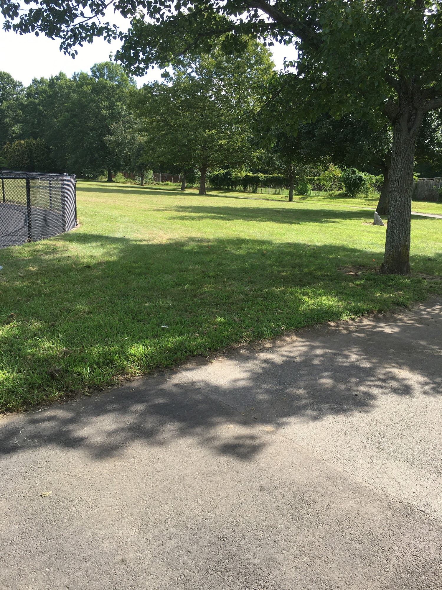 Father Tirocchi Field is a hidden gem with a fenced-in playground surrounded by soft foam for safety. It features a playground with swings and climbing, a little league ball field, a basketball court, and a paved walking path that loops around. The path connects to a kayak launch and longer routes. The park has picnic tables, trash cans, a large parking area, and an abundance of wildlife. It is recommended for younger children.