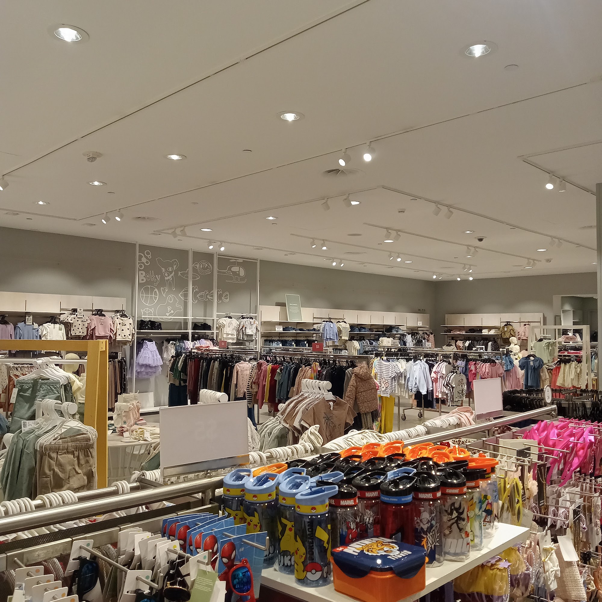 H&M stores are popular for their wide selection of clothing, especially for children. The store layout is simple and easy to navigate, with a neat and organized appearance. While the overall store design is plain, featuring mostly white, black, and gray colors, the children's section offers a vibrant burst of color that attracts attention. Staff members are helpful and friendly, often going out of their way to assist customers, such as finding specific items or last-minute deals. Prices are clear and reasonable, with good deals on various styles for women and men. Customers have had positive experiences, highlighting excellent customer service and a welcoming atmosphere, especially from managers and staff who build good relationships. The store also emphasizes safety measures, requiring face masks upon entry. Overall, H&M provides a pleasant shopping experience with a good variety of clothing options for different needs.