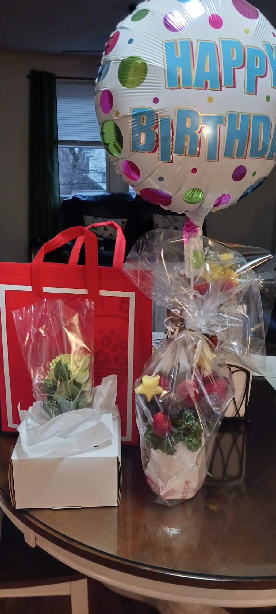 We use Edible Arrangements for get well, new baby, or other occasion gifts. It's on the expensive side, but they are very good quality and extremely appreciated. They are very good with communicating and delivery, and we've had great success with this Woonsocket store in particular