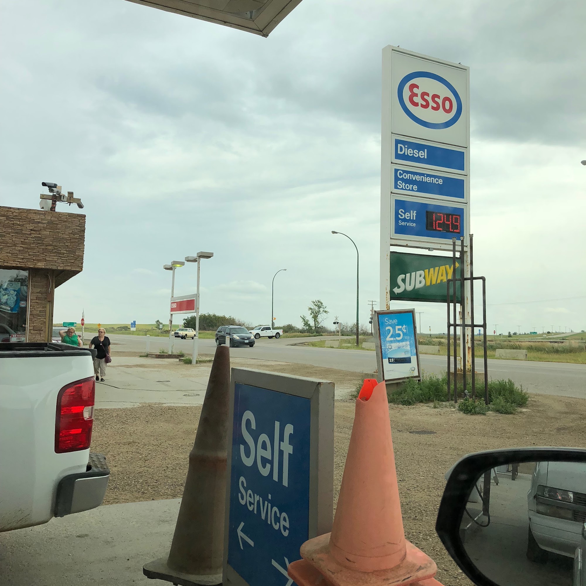 The Esso station is a great place to stop on the road, featuring a well-stocked convenient store with snacks, coffee, Drake sausages, and trucking accessories. A Subway and a desi store are on site. Clean and updated bathrooms are noted, though the men's washroom door is difficult not to slam. The gravel base area can be difficult for motorcycles and muddy in rain. Service includes self-serve pay-at-the-pump options and friendly staff. While there is room for improvement, the location has potential for future growth to cater to both locals and visitors.