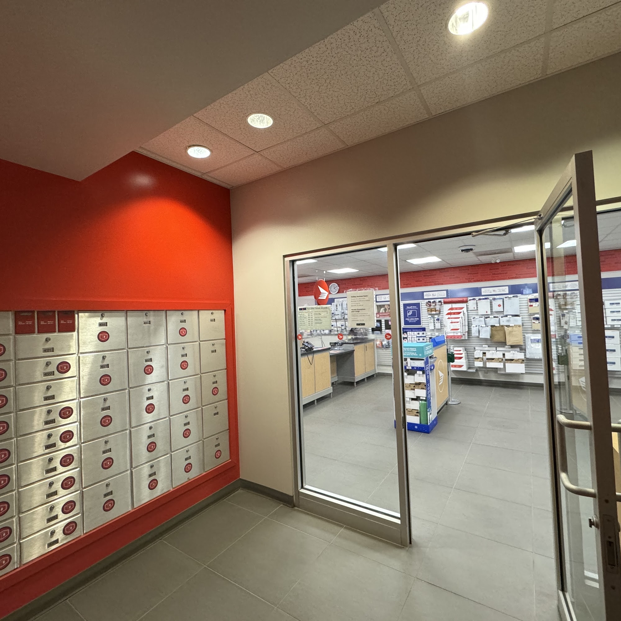 The central office has a PO box with 24/7 access and is the answer for people looking for a location. Service is top‑notch, 10/10, and the people are super supportive, friendly and helpful. They walked people through internationally posting process and kept the store absolutely clean with good vibes. The team working hard and is patient and sets a high bar for customer service standards. They also help with service in French and have great senses of humour that make the day.