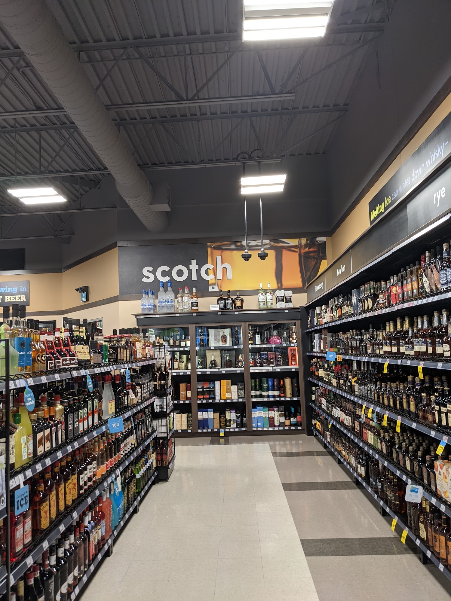Great selection of all the types of alcohol. Walk in cooler for beers and ciders , wine displays and large selectiin from all over , growler fill possible, and a selection of snacks. Really it is one stop shop for either just yourself or a get together.