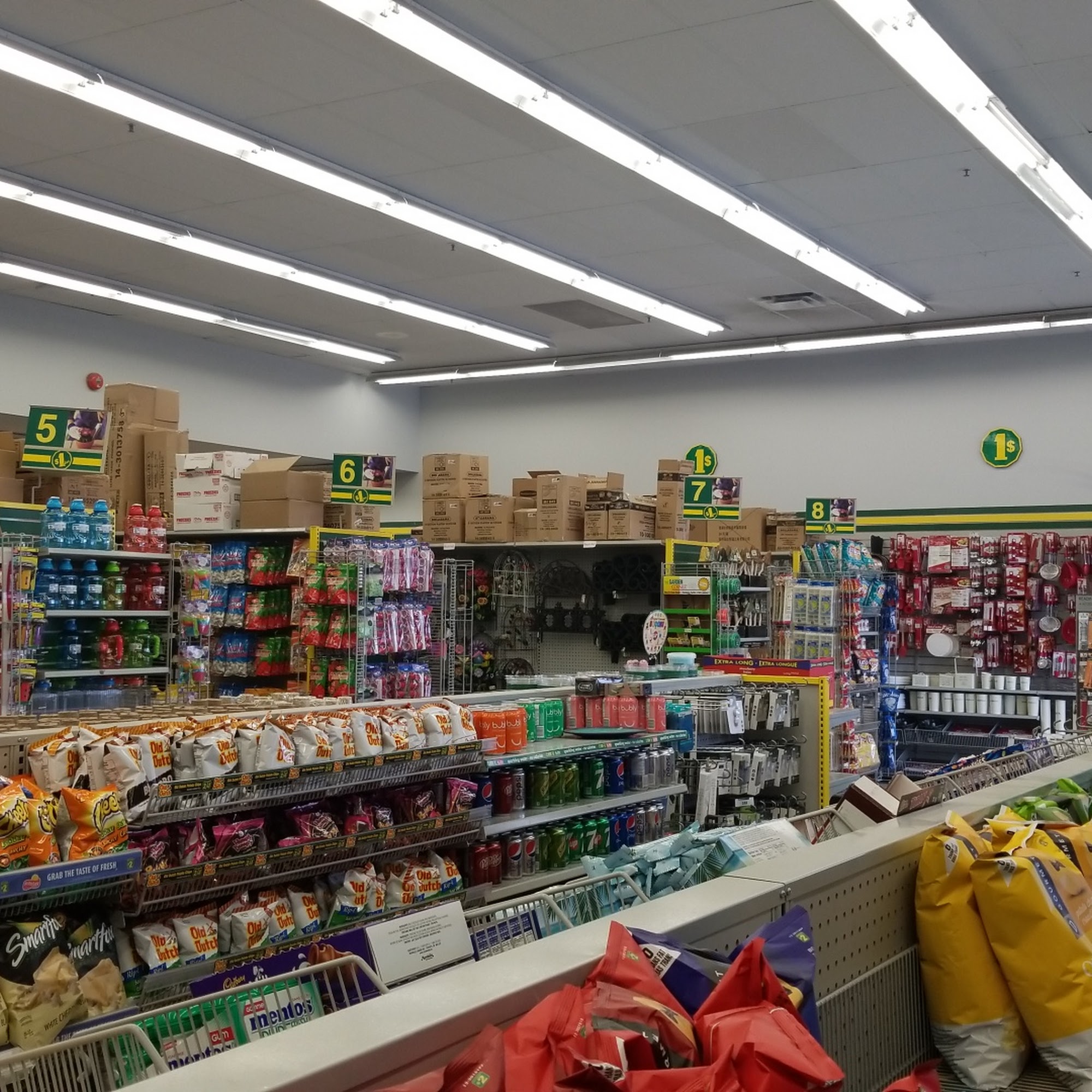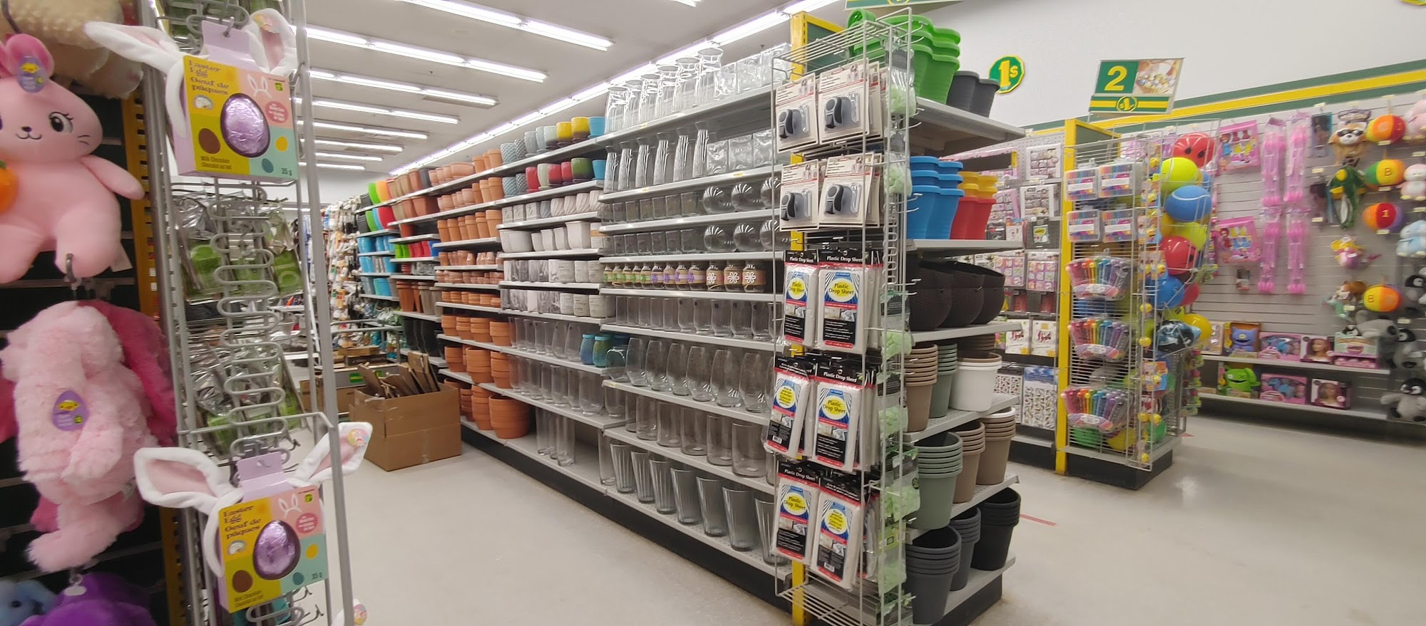 One of the biggest Dollaramas I've been to with tons of selection. The store was clean and the aisles were very nicely organized. It was a nice change to have a cashier instead of the now-standard automatic checkout machines. Great place to stop for some craft supplies and summer toys!