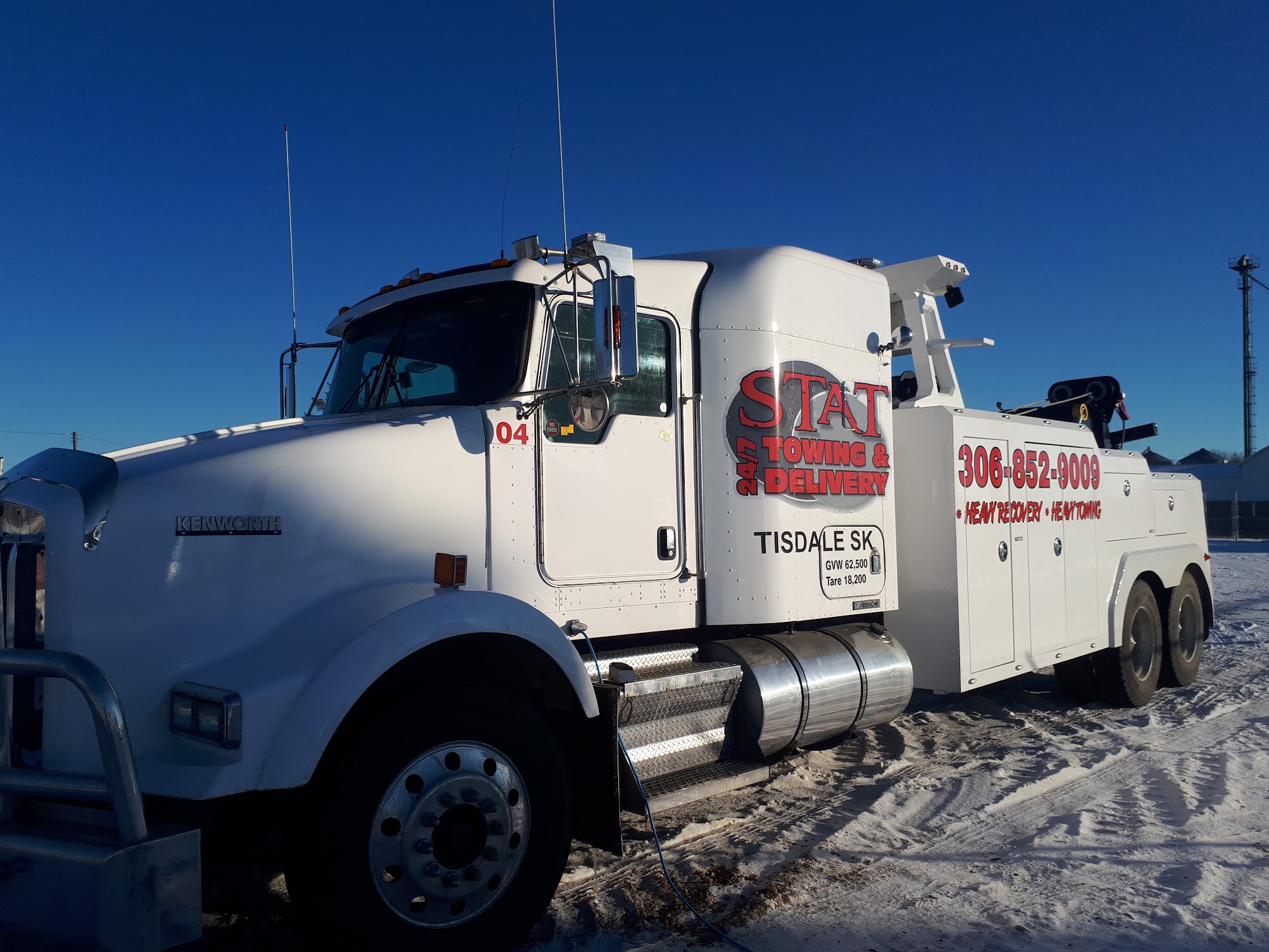 We offer emergency roadside assistance in the Tisdale, SK area, as well as Ag Equipment delivery anywhere in Saskatchewan. Our services include towing, boosting, fuel delivery, unlocks, heavy truck and equipment recovery/transport, flat deck transport, tire changes, and more. We have multiple heavy wreckers, deck trucks, light/medium wreckers, skid steer, traffic and environmental safety equipment. Bring us the issue and we will deliver the solution. If you are looking for a quality towing and delivery company at any hour of the day or night, call Stat Towing & Delivery in Tisdale, SK, for more information. Our 24/7/365 number is (306) 852-9009. Office hours 9-4 Mon to Friday We go province wide in Saskatchewan.
