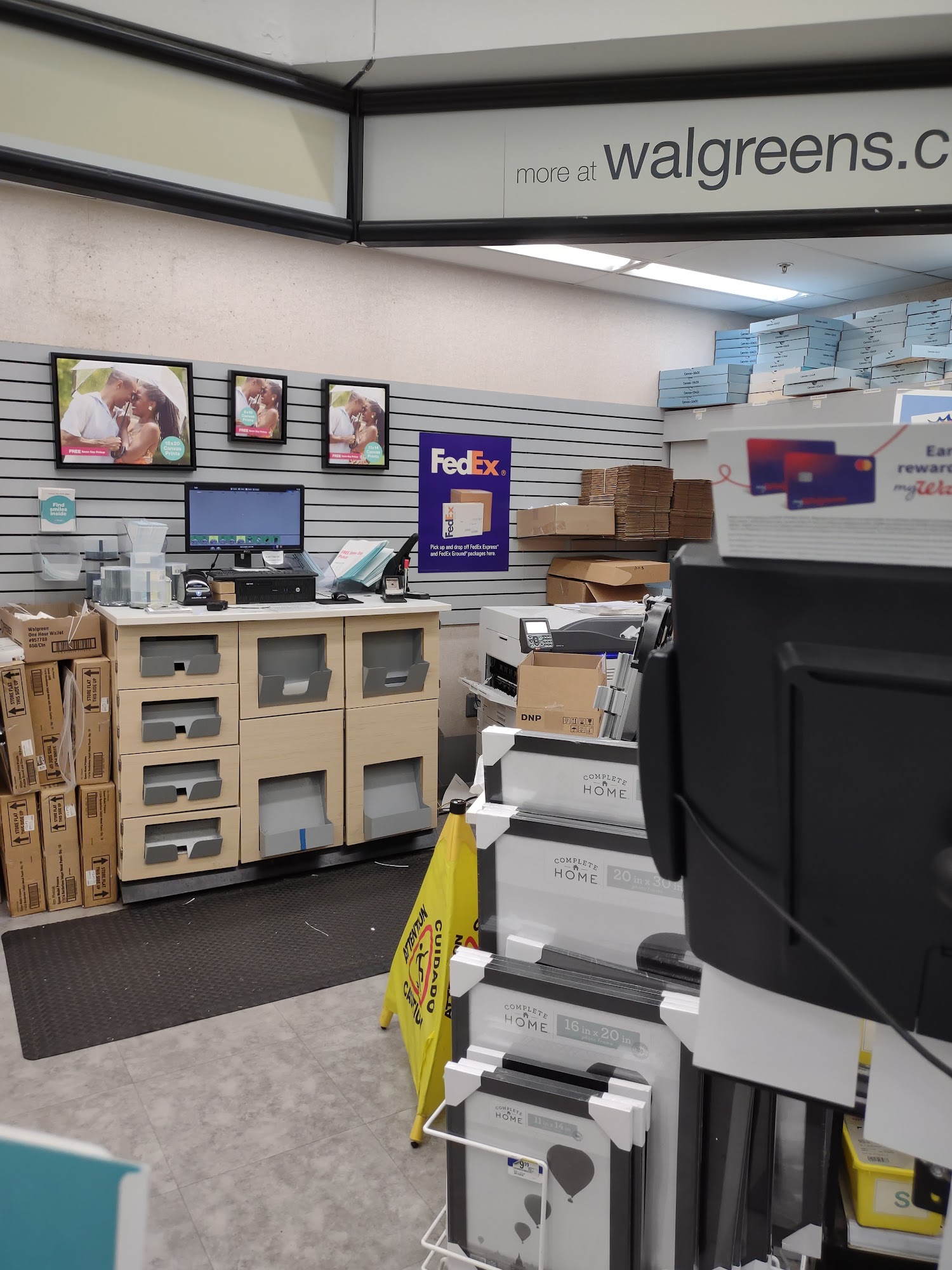 this is inside Walgreens. beawre you don't get a receipt. you only get a text that the package has been dropped off. the closest place you can go to get an actual receipt from FedEx is Savannah.
