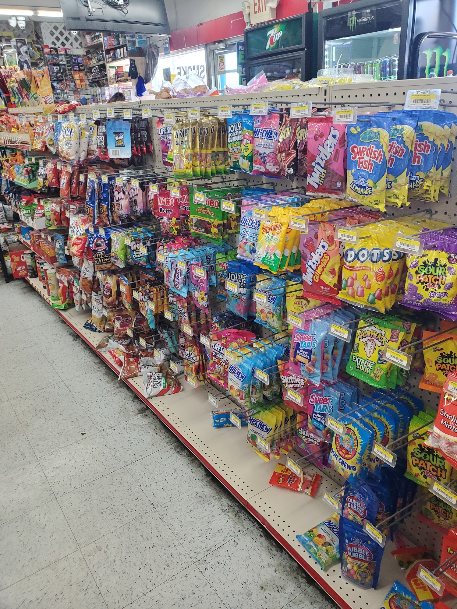 Various sodas, energy drinks, wine and spirits. SCEL, snacks, pizza, sundry items and so much more