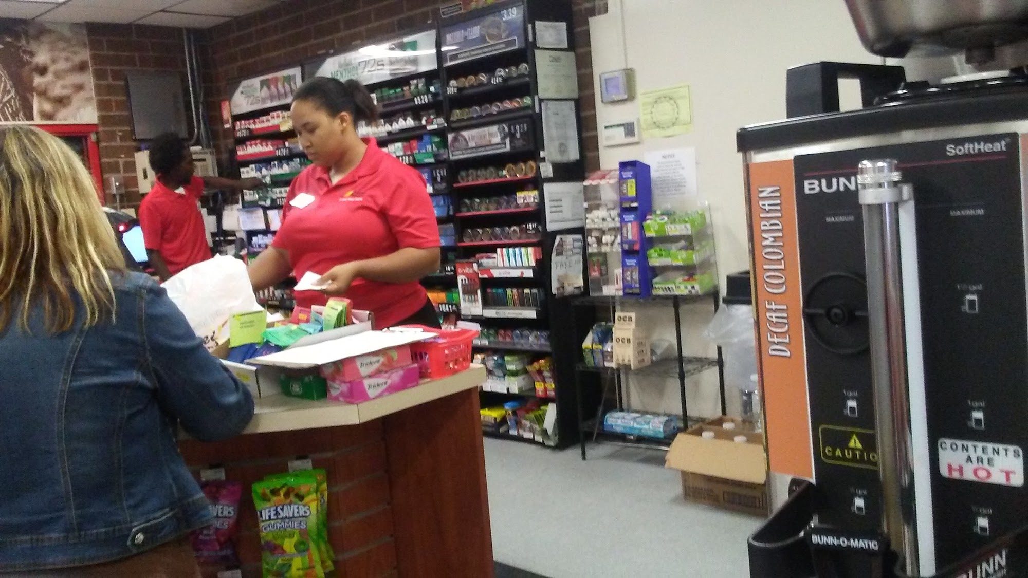 Cheap gas and inflated cigarette prices. $13 for 2-packs of Marlboro lights? That's more expensive than they are in Charleston. Time to quit if you shop here.