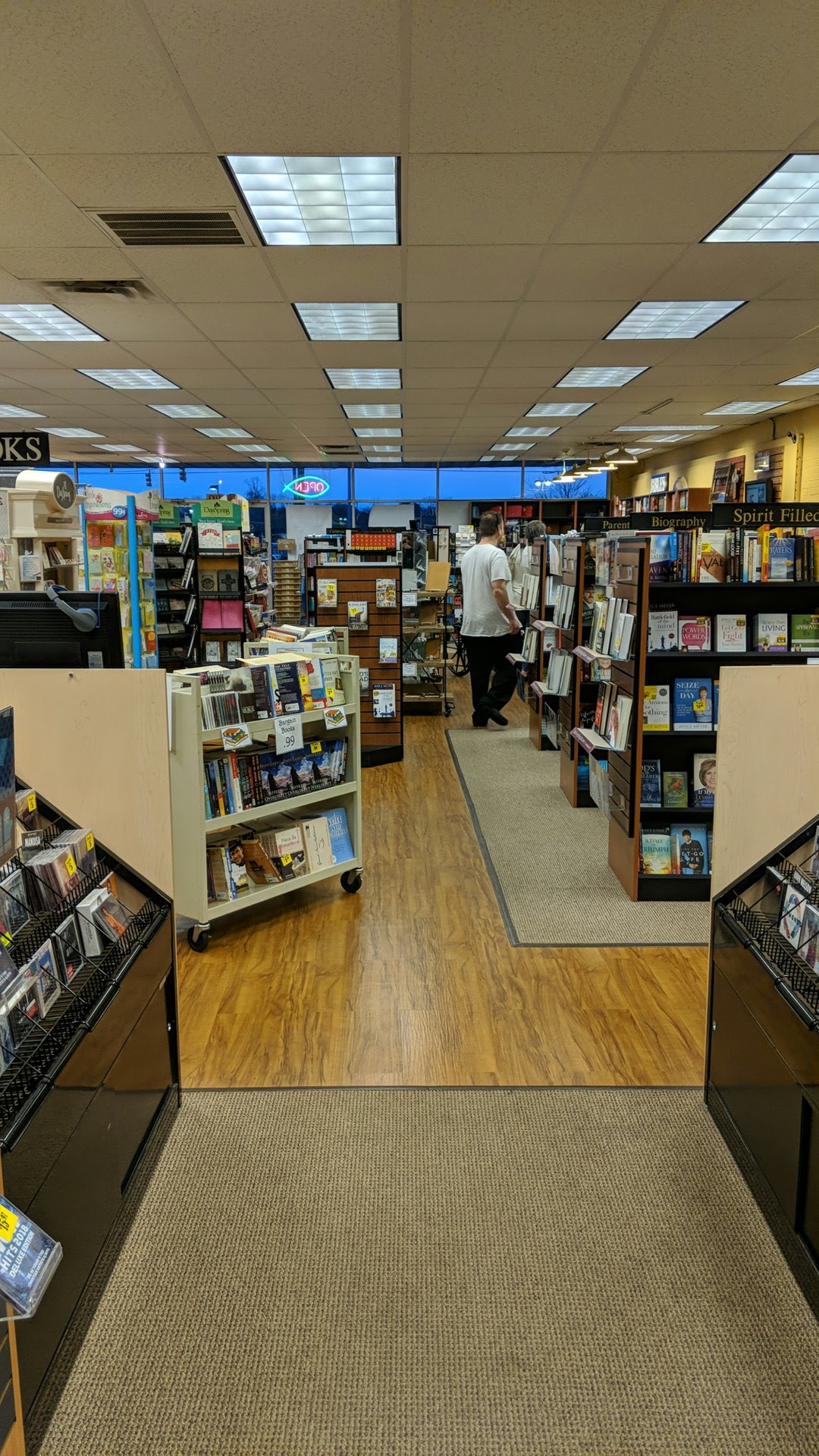 Only Christian book store reasonably close (not close enough). Prices are fair. Great service people.