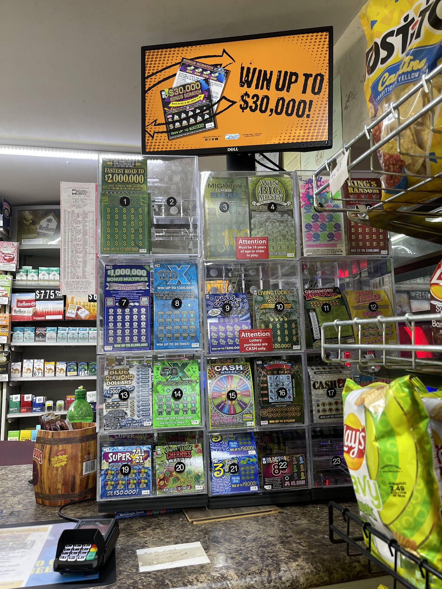 Great and quick customer service, variety of drinks, snacks, candy , beer, wine , and a smoke shop. reasonable prices too